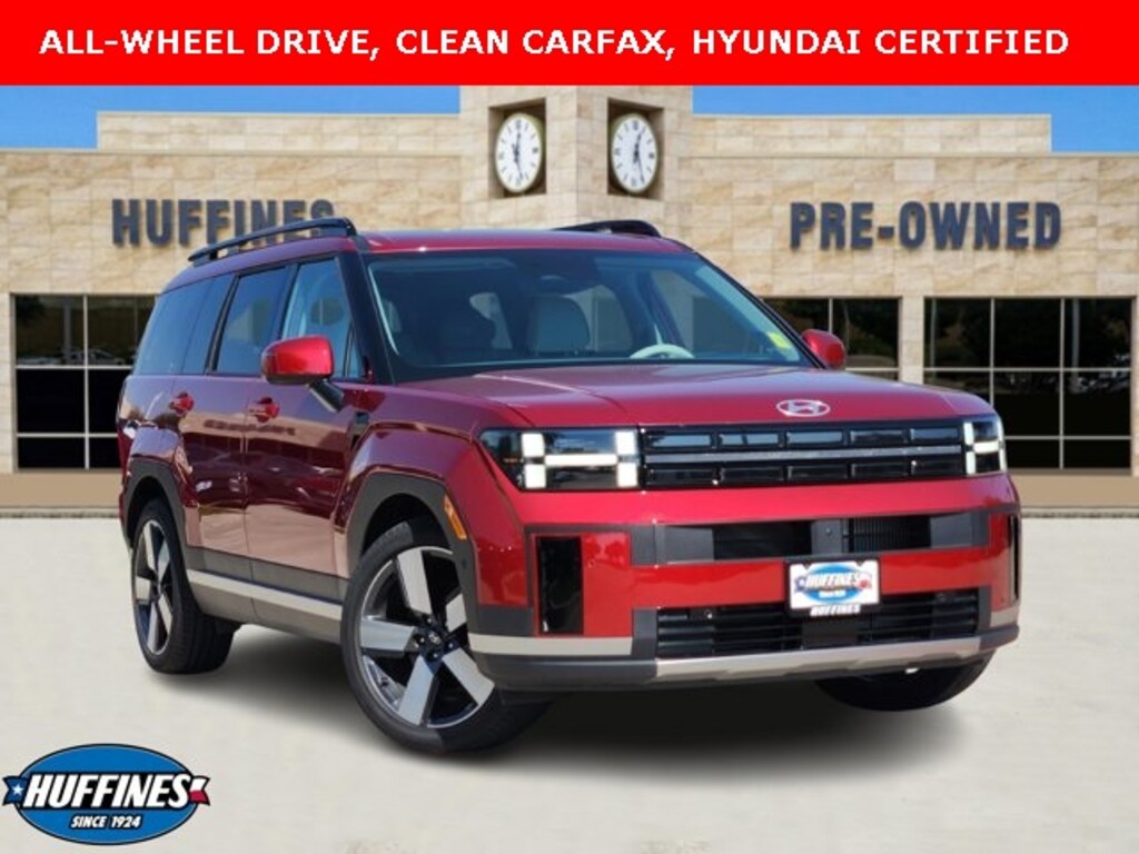 Ultimate Red 2024 Hyundai Santa Fe Limited 2.5L I4 AWD Shiftronic **CARFAX ONE OWNER**, **CLEAN CARFAX**, **NAVIGATION**, **MOONROOF**, **KEYLESS ENTRY**, **REMOTE START**, **LEATHER INTERIOR**, **REARVIEW CAMERA**, **BLUETOOTH / HANDS FREE CALLING**, **HYUNDAI CERTIFIED AT NO EXTRA CHARGE**, **ALL-WHEEL DRIVE**, **VENTILATED SEATS**, **FRONT AND REAR HEATED SEATS**, **HEATED STEERING WHEEL**, **APPLE CARPLAY AND ANDROID AUTO**, **POWER LIFTGATE**, **LOADED!!**, 3rd row seats: bench, ABS brakes, AM/FM radio: SiriusXM, Apple CarPlay & Android Auto, Auto-dimming Rear-View mirror, Exterior Parking Camera Rear, Front anti-roll bar, Garage door transmitter: HomeLink, Heated & Ventilated Front Bucket Seats, Heated front seats, Heated rear seats, Heated steering wheel, Knee airbag, Leather Seat Trim, Memory seat, Navigation System, Overhead airbag, Power driver seat, Power Liftgate, Power moonroof, Power passenger seat, Radio: AM/FM/HD Bose Premium Audio System, Rear anti-roll bar, Remote keyless entry, Security system, Steering wheel mounted audio controls, Ventilated front seats.