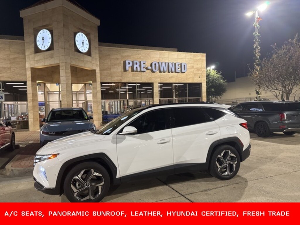 White Pearl 2024 Hyundai Tucson Limited 2.5L I4 DGI DOHC 16V LEV3-SULEV30 187hp FWD 8-Speed Automatic with SHIFTRONIC **CARFAX ONE OWNER**, **CLEAN CARFAX**, **LOCAL TRADE**, **NAVIGATION**, **MOONROOF**, **KEYLESS ENTRY**, **REMOTE START**, **LEATHER INTERIOR**, **REARVIEW CAMERA**, **BLUETOOTH / HANDS FREE CALLING**, **HYUNDAI CERTIFIED AT NO EXTRA CHARGE**, **VENTILATED SEATS**, **HEATED SEATS**, **HEATED STEERING WHEEL**, **PANORAMIC SUNROOF**, **APPLE CARPLAY AND ANDROID AUTO**, **POWER LIFTGATE**, **LOADED!!**, ABS brakes, Apple CarPlay & Android Auto, Auto-dimming Rear-View mirror, Automatic temperature control, Exterior Parking Camera Rear, Front anti-roll bar, Garage door transmitter: HomeLink, Heated & Ventilated Front Bucket Seats, Heated door mirrors, Heated front seats, Heated rear seats, Heated steering wheel, Leather Seat Trim, Memory seat, Navigation System, Overhead airbag, Power driver seat, Power Liftgate, Power moonroof, Power passenger seat, Radio: Bose Premium w/AM/FM/HD Audio System, Rear anti-roll bar, Rear side impact airbag, Remote keyless entry, Security system, Steering wheel mounted audio controls, Ventilated front seats, Wheels: 19" x 7.5J" Machine-Face Finish Alloy.