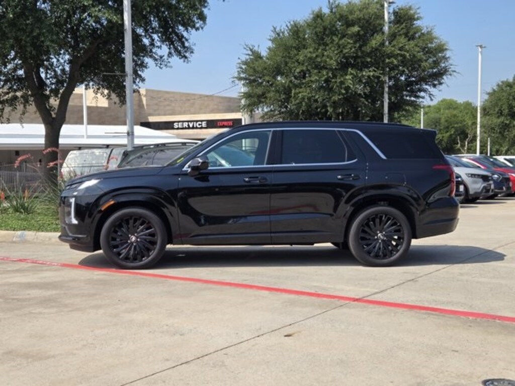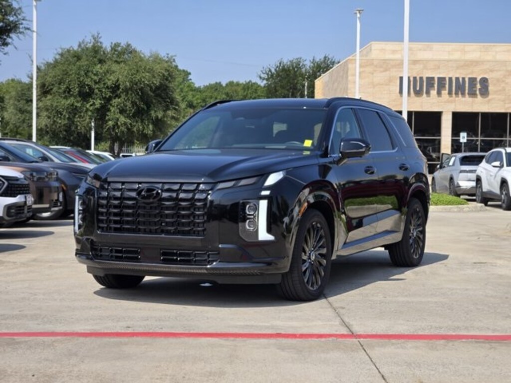 Abyss Black Pearl 2025 Hyundai Palisade Calligraphy Night Edition AWD V6 AWD 8-Speed Automatic with SHIFTRONIC **CARFAX ONE OWNER**, **CLEAN CARFAX**, **NAVIGATION**, **MOONROOF**, **KEYLESS ENTRY**, **REMOTE START**, **LEATHER INTERIOR**, **REARVIEW CAMERA**, **BLUETOOTH / HANDS FREE CALLING**, **RETIRED EXECUTIVE DEMO**, **HYUNDAI CERTIFIED AT NO EXTRA CHARGE**, **ALL-WHEEL DRIVE**, **FRONT AND REAR HEATED SEATS**, **FRONT AND REAR VENTILATED SEATS**, **HEATED STEERING WHEEL**, **HEADS-UP DISPLAY**, **PANORAMIC SUNROOF**, **APPLE CARPLAY AND ANDROID AUTO**, **POWER LIFTGATE**, ******FACTORY DEMO.*******, **LOADED!!**, 3rd row seats: split-bench, ABS brakes, AM/FM radio: SiriusXM, Apple CarPlay & Android Auto, Auto-dimming Rear-View mirror, Exterior Parking Camera Rear, Front anti-roll bar, Garage door transmitter: HomeLink, harman/kardon® Speakers, Heads-Up Display, Heated & Ventilated Front Bucket Seats, Heated door mirrors, Heated front seats, Heated rear seats, Heated steering wheel, Knee airbag, Memory seat, Microfiber Suede Seat Trim, Navigation System, Overhead airbag, Power Liftgate, Power moonroof, Power passenger seat, Rear air conditioning, Rear anti-roll bar, Rear side impact airbag, Security system, Ventilated front seats, Ventilated rear seats, Wheels: 20" x 7.5J Black Liquid Paint Alloy.
