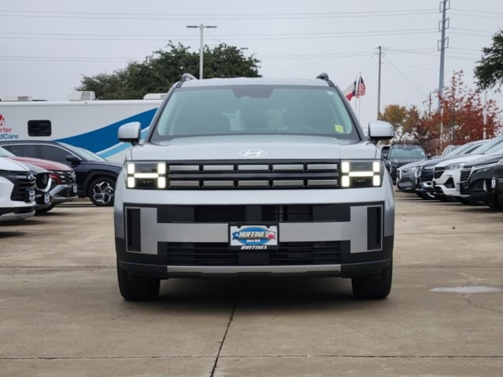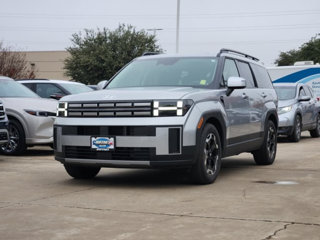 Shimmering Silver Pearl 2025 Hyundai Santa Fe SEL 2.5L I4 FWD Shiftronic **CLEAN CARFAX**, **LOCAL TRADE**, **KEYLESS ENTRY**, **REMOTE START**, **LEATHER INTERIOR**, **REARVIEW CAMERA**, **BLUETOOTH / HANDS FREE CALLING**, **HEATED SEATS**, **APPLE CARPLAY AND ANDROID AUTO**, **POWER LIFTGATE**, 18" x 7.5J Alloy Wheels, 3rd row seats: bench, ABS brakes, AM/FM radio: SiriusXM, Apple CarPlay & Android Auto, Exterior Parking Camera Rear, Front anti-roll bar, H-Tex Leatherette Seat Trim, Heated door mirrors, Heated Front Bucket Seats, Heated front seats, Knee airbag, Overhead airbag, Power driver seat, Power Liftgate, Rear anti-roll bar, Rear side impact airbag, Remote keyless entry, Security system, Steering wheel mounted audio controls.