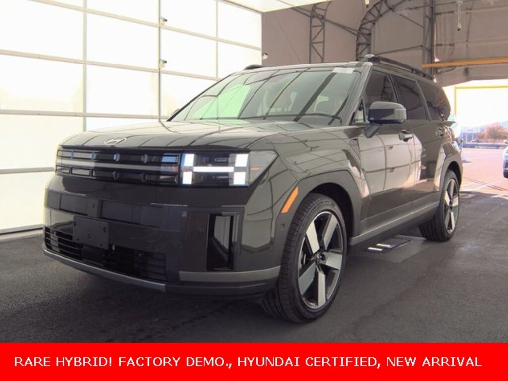 Rockwood Green 2025 Hyundai Santa Fe Hybrid Limited I4 FWD 6-Speed Automatic with Shiftronic **CARFAX ONE OWNER**, **CLEAN CARFAX**, **NAVIGATION**, **MOONROOF**, **KEYLESS ENTRY**, **REMOTE START**, **LEATHER INTERIOR**, **REARVIEW CAMERA**, **BLUETOOTH / HANDS FREE CALLING**, **RETIRED EXECUTIVE DEMO**, **HYUNDAI CERTIFIED AT NO EXTRA CHARGE**, **VENTILATED SEATS**, **FRONT AND REAR HEATED SEATS**, **HEATED STEERING WHEEL**, **APPLE CARPLAY AND ANDROID AUTO**, **POWER LIFTGATE**, ******FACTORY DEMO.*******, **LOADED!!**, ****RARE HYBRID!!!!****, 3rd row seats: bench, ABS brakes, AM/FM radio: SiriusXM, Apple CarPlay & Android Auto, Auto-dimming Rear-View mirror, Exterior Parking Camera Rear, Front anti-roll bar, Garage door transmitter: HomeLink, Heated & Ventilated Front Bucket Seats, Heated door mirrors, Heated front seats, Heated rear seats, Heated steering wheel, Knee airbag, Leather Seat Trim, Memory seat, Navigation System, Overhead airbag, Power Liftgate, Power moonroof, Power passenger seat, Radio: AM/FM/HD Bose Premium Audio System, Rear anti-roll bar, Rear side impact airbag, Remote keyless entry, Security system, Steering wheel mounted audio controls, Ventilated front seats, Wheels: 20" x 8.5J Alloy.