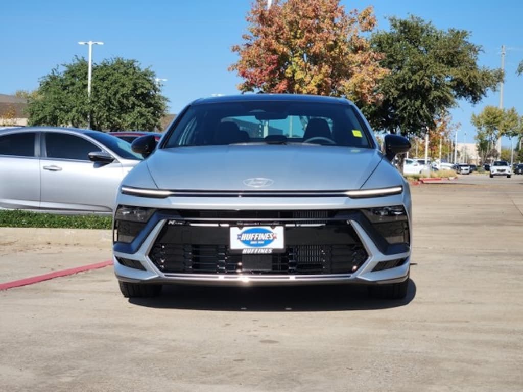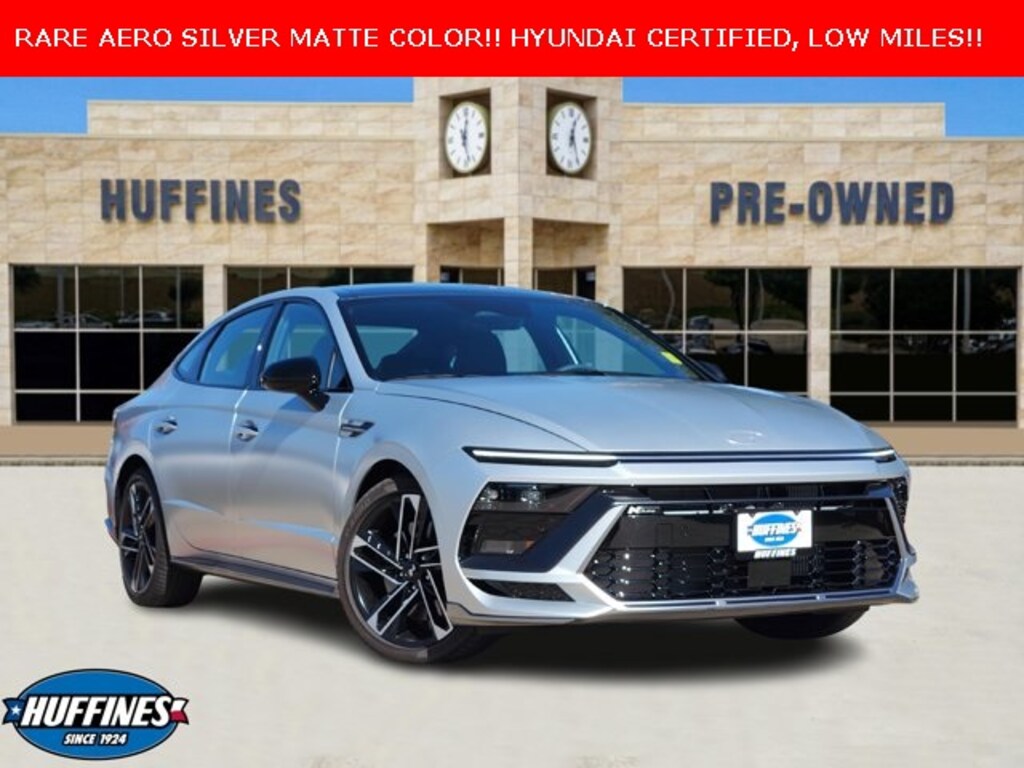 Aero Silver Matte 2025 Hyundai Sonata N Line I4 FWD 8-Speed **CARFAX ONE OWNER**, **CLEAN CARFAX**, **NAVIGATION**, **MOONROOF**, **KEYLESS ENTRY**, **REMOTE START**, **LEATHER INTERIOR**, **REARVIEW CAMERA**, **BLUETOOTH / HANDS FREE CALLING**, **RETIRED EXECUTIVE DEMO**, **HYUNDAI CERTIFIED AT NO EXTRA CHARGE**, **HEATED SEATS**, **PANORAMIC SUNROOF**, **APPLE CARPLAY AND ANDROID AUTO**, ******FACTORY DEMO.*******, **LOADED!!**, 19" x 8.0J Aluminum Alloy Wheels, ABS brakes, AM/FM radio: SiriusXM, Apple CarPlay & Android Auto, Auto-dimming Rear-View mirror, Automatic temperature control, Exterior Parking Camera Rear, Front anti-roll bar, Heated front seats, Heated N Unique Sport Seats, Knee airbag, Leatherette/Suede Combination Seating Surfaces, Navigation System, Overhead airbag, Power driver seat, Power moonroof, Radio: AM/FM/HD/SiriusXM/Navigation, Rear anti-roll bar, Rear side impact airbag, Remote keyless entry, Security system, Steering wheel mounted audio controls.