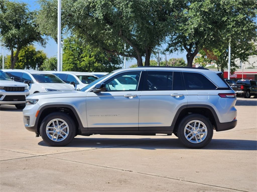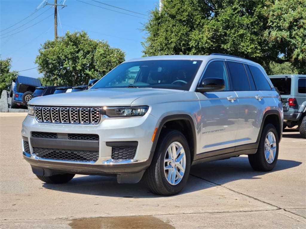 Silver Zynith 2024 Jeep Grand Cherokee Laredo Laredo 8-Speed Automatic 3.6L V6 24V VVT 4WD Luxury Tech Group I (115V Auxiliary Power Outlet, Heated Front Seats, Heated Steering Wheel, Power Liftgate, Rain Sensitive Windshield Wipers, Remote Start System, Secondary Active Grille Shutters, Selectable Tire Fill Alert, and Wireless Charging Pad), Quick Order Package 23D Laredo X (Laredo X, Power Sunroof, and Wheels: 18" x 8" Fully Painted Aluminum), Trailer Tow Package (180 Amp Alternator, 7 & 4-Pin Wiring Harness, Automatic Headlamp Levelling System, Class IV Receiver Hitch, Heavy-Duty Engine Cooling, Rear Load Levelling Suspension, and Trailer Hitch Zoom), 4WD, 3.45 Rear Axle Ratio, 4-Wheel Disc Brakes, 6 Speakers, ABS brakes, Air Conditioning, Alloy wheels, Anti-whiplash front head restraints, Automatic temperature control, Brake assist, Bumpers: body-color, Cloth Seats, Compass, Delay-off headlights, Driver door bin, Driver vanity mirror, Dual front impact airbags, Dual front side impact airbags, Electronic Stability Control, Emergency communication system, Four wheel independent suspension, Front anti-roll bar, Front Bucket Seats, Front Center Armrest w/Storage, Front dual zone A/C, Front License Plate Bracket, Front reading lights, Fully automatic headlights, Heated door mirrors, Illuminated entry, Knee airbag, Low tire pressure warning, Normal Duty Suspension, Occupant sensing airbag, Outside temperature display, Overhead airbag, Overhead console, Panic alarm, ParkView Rear Back-Up Camera, Passenger door bin, Passenger vanity mirror, Power door mirrors, Power driver seat, Power steering, Power windows, Radio data system, Radio: Uconnect 5 w/8.4" Display, Rear anti-roll bar, Rear reading lights, Rear window defroster, Rear window wiper, Remote keyless entry, Security system, Speed control, Speed-Sensitive Wipers, Split folding rear seat, Spoiler, Steering wheel mounted audio controls, Tachometer, Telescoping steering wheel, Tilt steering wheel, Traction control, Trip computer, Variably intermittent wipers, Voltmeter, and Wheels: 17" x 6.5" Fully Painted Aluminum.