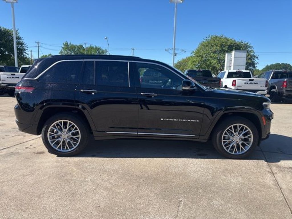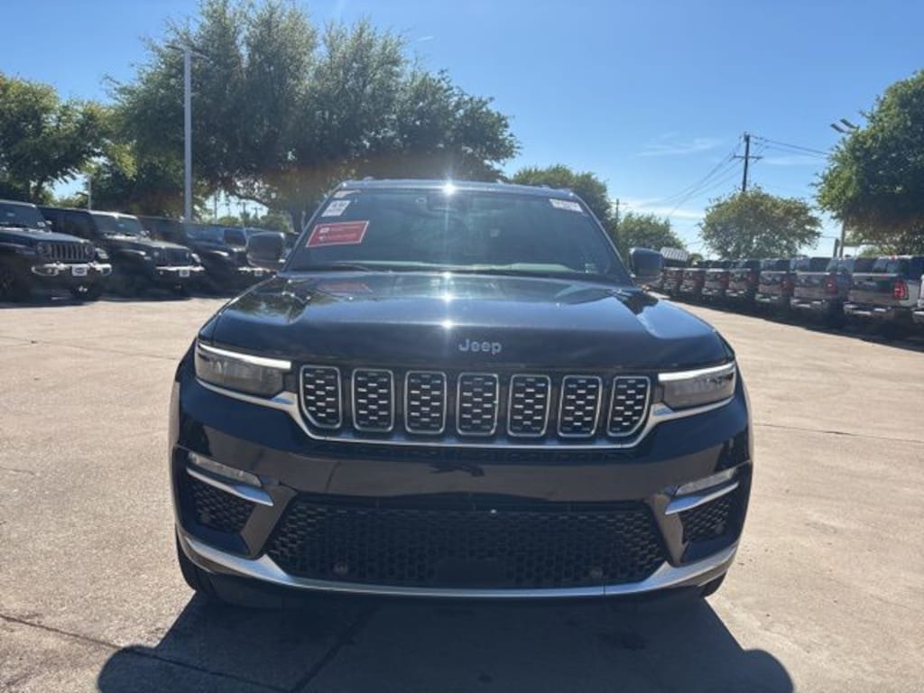 Recent Arrival! Certified. CARFAX One-Owner. Clean CARFAX. Diamond Black Crystal Pearlcoat 2025 Jeep Grand Cherokee Summit Summit 8-Speed Automatic 3.6L V6 24V VVT 4WD Quick Order Package 23S, FCA US LLC Certified Pre-Owned Certified, 4WD, 10 Speakers, 4-Wheel Disc Brakes, ABS brakes, Active Noise Control System, Adaptive suspension, Air Conditioning, Alloy wheels, AM/FM radio: SiriusXM with 360L, Anti-whiplash front head restraints, Audio memory, Auto High-beam Headlights, Auto-dimming door mirrors, Auto-dimming Rear-View mirror, Auto-leveling suspension, Automatic temperature control, Auxiliary Battery, Brake assist, Bumpers: body-color, Compass, Delay-off headlights, Driver door bin, Driver vanity mirror, Dual front impact airbags, Dual front side impact airbags, Electronic Stability Control, Emergency communication system, Four wheel independent suspension, Front anti-roll bar, Front Bucket Seats, Front Center Armrest w/Storage, Front dual zone A/C, Front fog lights, Front License Plate Bracket, Front reading lights, Fully automatic headlights, Garage door transmitter, Genuine wood dashboard insert, Genuine wood door panel insert, Heated door mirrors, Heated front seats, Heated rear seats, Heated steering wheel, Illuminated entry, Knee airbag, Leather steering wheel, Low tire pressure warning, Memory seat, Model Year Tracking, Nappa Leather Seats, Navigation System, Normal Duty Suspension, Occupant sensing airbag, Outside temperature display, Overhead airbag, Overhead console, Panic alarm, Passenger door bin, Passenger vanity mirror, Power door mirrors, Power driver seat, Power Liftgate, Power moonroof, Power passenger seat, Power steering, Power windows, Radio data system, Radio: Uconnect 5 Nav with 10.1" Display, Rain sensing wipers, Rear air conditioning, Rear anti-roll bar, Rear dual zone A/C, Rear reading lights, Rear seat center armrest, Rear window defroster, Rear window wiper, Remote keyless entry, Security system, Speed control, Speed-Sensitive Wipers, Split folding rear seat, Spoiler, Steering wheel memory, Steering wheel mounted audio controls, Tachometer, Telescoping steering wheel, Tilt steering wheel, Traction control, Trip computer, Turn signal indicator mirrors, Variably intermittent wipers, Ventilated front seats, Voltmeter, and Wheels: 20" x 8.5" Fully Painted Aluminum Silver.