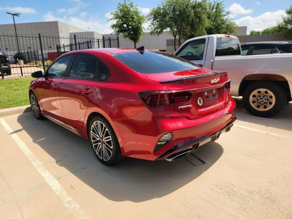 ONE OWNER, CLEAN CARFAX, BLUETOOTH, BACK UP CAMERA, BLIND SPOT MONITER, LANE DEPARTURE WARNING, APPLE CARPLAY, ANDROID AUTO, Air Conditioning, AM/FM radio: SiriusXM, Exterior Parking Camera Rear, Navigation System, Power door mirrors, Power steering, Traction control, Turn signal indicator mirrors. 2024 Kia Forte GT 1.6L I4 Turbo 7-Speed Automatic FWD Currant Red