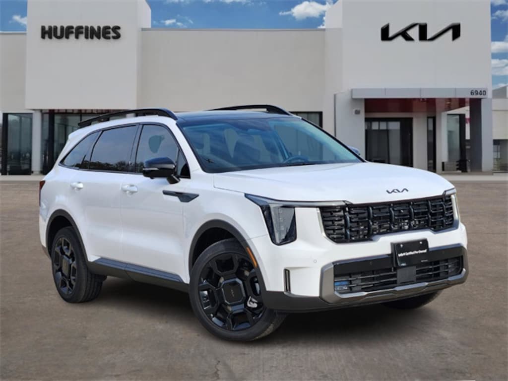 ONE OWNER, CLEAN CARFAX, BLUETOOTH, BACK UP CAMERA, NAVIGATION, HEATED AND COOLED SEATS, BLIND SPOT MONITER, APPLE CARPLAY, ANDROID AUTO, AWD, Navigation System. 2025 Kia Sorento X-Line SX 2.5L I4 DGI Turbocharged DOHC 16V LEV3-SULEV30 281hp 8 Speed Dual Clutch AWD Glacial White Pearl
