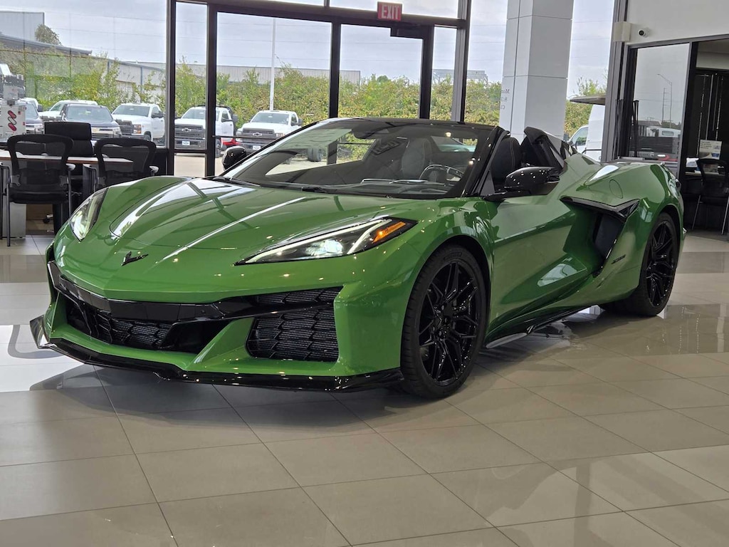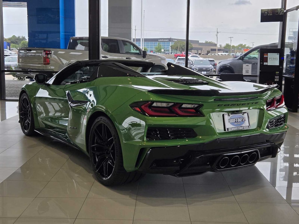 CONVERTIBLE TOP, CARBON FLASH-PAINTED NACELLES AND ROOF, WHEELS, 20" X 10" (50.8 CM X 25.4 CM) FRONT AND 21" X 13" (53.3 CM X 33 CM) REAR SPIDER DESIGN, BLACK FORGED ALUMINUM, ENGINE, 5.5L V8 DI, HIGH-OUTPUT Variable Valve Timing (VVT), (670 hp [499.6 kW] @ 8400 rpm, 460 lb-ft of torque [623.8 N-m] @ 6300 rpm) (STD), TRANSMISSION, 8-SPEED DUAL CLUTCH, INCLUDES MANUAL AND AUTO MODES (STD). Chevrolet 3LZ with Roswell Green Metallic exterior and Jet Black interior features a 8 Cylinder Engine with 670 HP at 8400 RPM*.