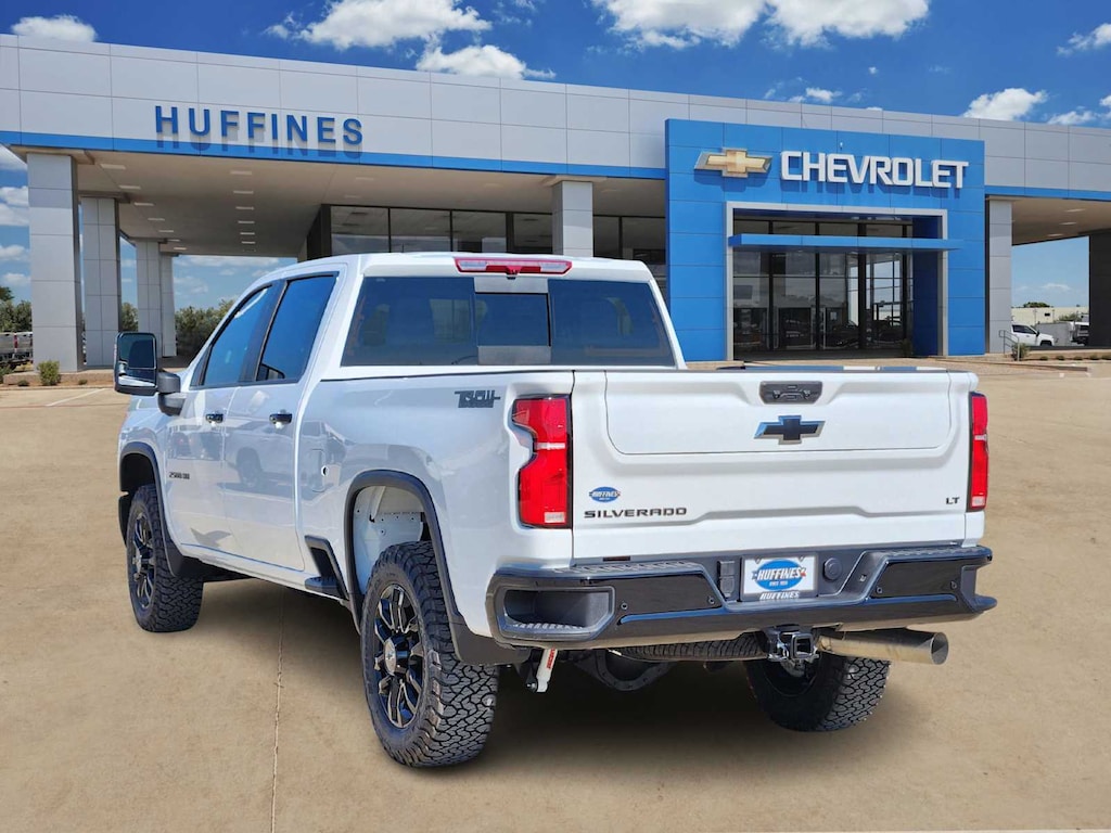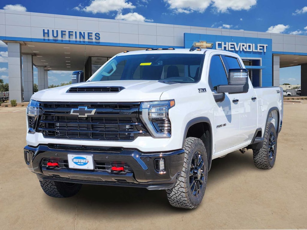 ENGINE, DURAMAX 6.6L TURBO-DIESEL V8 B20-Diesel compatible, (470 hp [350.5 kW] @ 2800 rpm, 975 lb-ft of torque [1322 Nm] @ 1600 rpm), TRAIL BOSS PACKAGE Includes black grille bar with "Chevy Black Bow Tie", Black grille inserts, (SRI) 20" High gloss Black painted wheels, (VB5) High Gloss Black painted front bumper, (VT5) High Gloss Black painted rear bumper, (UGA) Red Tow Hooks, (QFG) LT275/65R20 BF Goodrich off-road tires, Black skid plate, Black badging, Black bowtie on horn pad, (DP6) High Gloss Black mirror caps, Black hood vent surround, High Gloss Black door handles and (CGN) Chevytec spray-on bedliner. Includes high-intensity LED headlamps and (DWI) trailer mirrors. SAFETY PACKAGE includes (UD5) Front and Rear Park Assist, (UKV) Trailer Side Blind Zone Alert, (UFG) Rear Cross Traffic Alert, (UV2) HD Surround Vision, (UVN) Bed View Camera and (TRG) Trailer Camera Provisions (Includes (UET) Trailering App. CONVENIENCE PACKAGE includes (UF2) Cargo bed LED lighting, (CJ2) dual-zone automatic climate control, (A2X) 10-way power driver seat including power lumbar, (N37) manual tilt/telescoping steering column, (T3U) LED fog lamps, CONVENIENCE PACKAGE II includes (PZ8) Hitch Guidance with Hitch View, (UET) Trailering App, (A48) rear sliding power window and (UG1) Universal Home Remote. Includes (R7O) Cloth Rear Seat with Storage Package. REMOTE START PACKAGE includes (BTV) Remote Start, (UTJ) Theft Deterrent System and (C49) rear-window defogger, Z71 OFF-ROAD PACKAGE includes (Z71) Off-Road suspension with off-road tuned twin tube Rancho shocks, (JHD) Hill Descent Control and (NZZ) skid plates (transfer case and oil pan) (Includes (QXT) LT265/70R17 all-terrain, blackwall tires and molded in color Black grille. MIRRORS, OUTSIDE POWER-ADJUSTABLE VERTICAL TRAILERING WITH HEATED AND AUTO-DIMMING UPPER GLASS lower convex mirrors, turn signal indicators, puddle lamps, (U12) perimeter lighting, auxiliary lighting, power folding/manual extending (extends 3.31" [84.25mm]) Includes (DD8) auto-dimming rearview mirror which can be upgraded to (DRZ) Rear Camera Mirror.), TAILGATE, MULTI-FLEX with six functional load/access features, NOTE: Auto release can be disabled if ball hitch is installed. See Owner's manual for details, HEAT PACKAGE includes (KA1) Heated driver and passenger seats and (KI3) Heated steering wheel, LPO, ALL-WEATHER FLOOR LINERS 1st and 2nd rows, (includes Z71 logo on front mats), AUDIO SYSTEM, CHEVROLET INFOTAINMENT 3 PREMIUM SYSTEM with Google built-in compatibility (select service plan required, terms and limitations apply) including navigation capability, 13.4" diagonal HD color touchscreen, includes multi-touch display, AM/FM stereo, Bluetooth® streaming audio for music and most phones; featuring Wireless Apple CarPlay® and Wireless Android Auto® capability for compatible phones, advanced voice recognition, in-vehicle apps, personalized profiles for infotainment and vehicle settings (STD), TRANSMISSION, 10-SPEED AUTOMATIC, SEAT, CLOTH REAR WITH STORAGE PACKAGE 60/40 folding bench for Crew Cab models, includes seatback storage on left and right side, center fold out armrest with 2 cupholders, (includes child seat top tether anchor). Chevrolet LT with Summit White exterior and Jet Black interior features a 8 Cylinder Engine with 470 HP at 2800 RPM*.