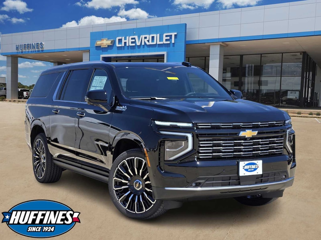 HIGH COUNTRY DELUXE includes (C3U) Panoramic power sunroof, (B3L) power-retractable assist steps with perimeter lighting, (F47) Air Ride Adaptive suspension and (NHT) Max Trailering Package, SUPER CRUISE a hands-free driver assistance feature for use on compatible roads, includes automatic lane changing and trailering capability, WHEELS, 24" X 9.5" (61 CM X 24.1 CM) BRIGHT MACHINED AND PAINTED HIGH GLOSS BLACK Includes (SFE) wheel locks, LPO.), LPO, PREMIUM LINER PROTECTION PACKAGE includes (AAK) 1st and 2nd row premium floor liners, LPO, (RIB) 3rd row all-weather floor liner, LPO and (CAV) all-weather cargo mat, LPO (dealer-installed), TECHNOLOGY PACKAGE Includes (NWM) Advanced Security Package content and (TCP) AutoSense power liftgate.), SUSPENSION, AIR RIDE ADAPTIVE, ENGINE, 6.2L ECOTEC3 V8 with Dynamic Fuel Management, Direct Injection and Variable Valve Timing, includes aluminum block construction (420 hp [313 kW] @ 5600 rpm, 460 lb-ft of torque [624 Nm] @ 4100 rpm) (STD), TRANSMISSION, 10-SPEED AUTOMATIC electronically controlled with overdrive, includes Traction Select System including tow/haul (STD), ADVANCED SECURITY PACKAGE includes (UTR) self-powered horn, (UTV) interior movement sensors, (UTU) vehicle inclination sensors, (UTW) glass break sensors in rear quarter glass and liftgate window and door and liftgate lock shields, AUDIO SYSTEM, 17.7" DIAGONAL ADVANCED COLOR LCD DISPLAY with Google built-in compatibility (select service plan required, terms and limitations apply), including navigation capability, connected apps, personalized profiles for each driver's settings, Natural Voice Recognition and Phone Integration (STD), ADVANCED TRAILERING PACKAGE includes (UKW) Blind Zone Steering Assist with Trailering, (PZ8) Hitch View and (UET) Smart Trailer Integration Indicator. Chevrolet High Country with Black exterior and Jet Black interior features a 8 Cylinder Engine with 420 HP at 5600 RPM*.