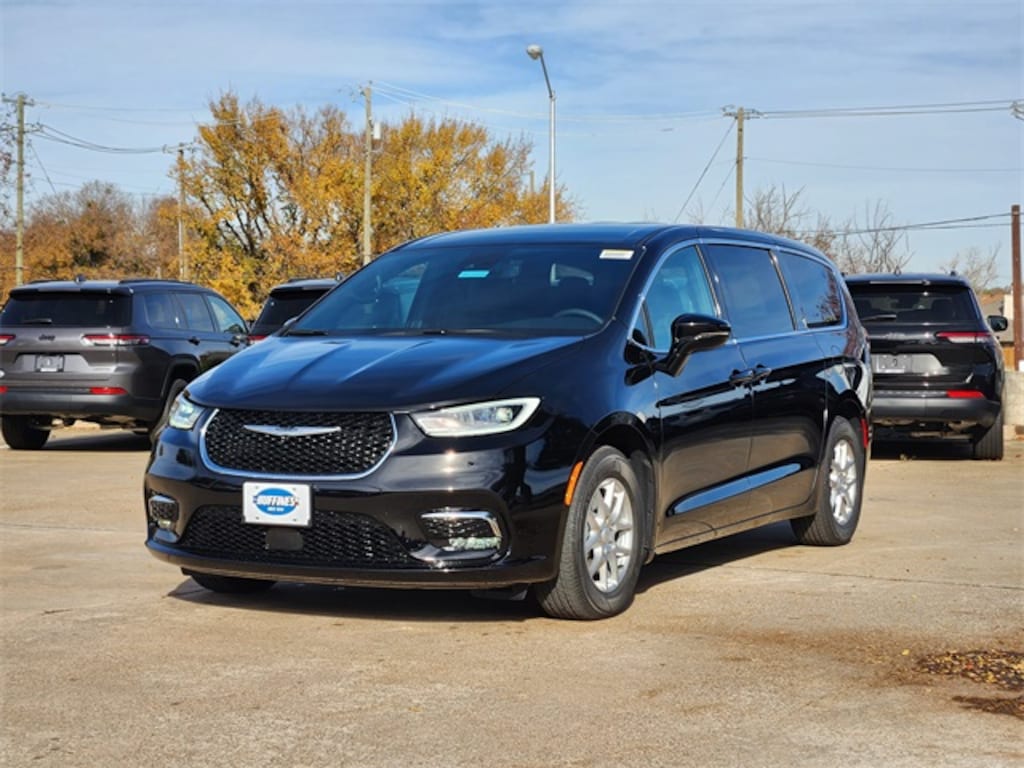 Priced below KBB Fair Purchase Price! Diamond Black Crystal Pearlcoat Select FWD 9-Speed 948TE Automatic 3.6L V6 24V VVT Quick Order Package 27L, 10.1" Touchscreen Display, 17" x 7.0" Aluminum Wheels, 3.25 Axle Ratio, 3rd row seats: split-bench, 4-Wheel Disc Brakes, 4G LTE Wi-Fi Hot Spot, 6 Speakers, 8-Passenger Seating, ABS brakes, Air Conditioning, Alloy wheels, AM/FM radio: SiriusXM, Apple CarPlay, Apple CarPlay/Android Auto, Auto-dimming Rear-View mirror, Automatic temperature control, Black Seats, Brake assist, Bumpers: body-color, Caprice Leatherette Bucket Seats, Compass, Connectivity - US/Canada, Delay-off headlights, Disassociated Touchscreen Display, Driver door bin, Driver vanity mirror, Driver's Seat Mounted Armrest, Dual front impact airbags, Dual front side impact airbags, Electronic Stability Control, Emergency communication system: Chrysler Connect, For Details, Visit DriveUconnect.com, Four wheel independent suspension, Front anti-roll bar, Front Bucket Seats, Front dual zone A/C, Front fog lights, Front reading lights, Fully automatic headlights, Garage door transmitter, Google Android Auto, GPS Antenna Input, Heated door mirrors, Heated front seats, Heated steering wheel, Illuminated entry, Integrated Active Noise Cancellation, Integrated Center Stack Radio, Knee airbag, Low tire pressure warning, Memory seat, Occupant sensing airbag, Outside temperature display, Overhead airbag, Overhead console, Panic alarm, ParkView Rear Back-Up Camera, Passenger door bin, Passenger seat mounted armrest, Passenger vanity mirror, Power door mirrors, Power driver seat, Power Liftgate, Power steering, Power windows, Radio data system, Radio: Uconnect 5 with 10.1" Display, Rain sensing wipers, Rear air conditioning, Rear reading lights, Rear window defroster, Rear window wiper, Reclining 3rd row seat, Remote keyless entry, Security system, Speed control, Split folding rear seat, Spoiler, Steering wheel mounted audio controls, Tachometer, Telescoping steering wheel, Tilt steering wheel, Touring Suspension, Traction control, Trip computer, Turn signal indicator mirrors, USB Host Flip, Variably intermittent wipers, and VoltmeteR. 19/28 City/Highway MPG