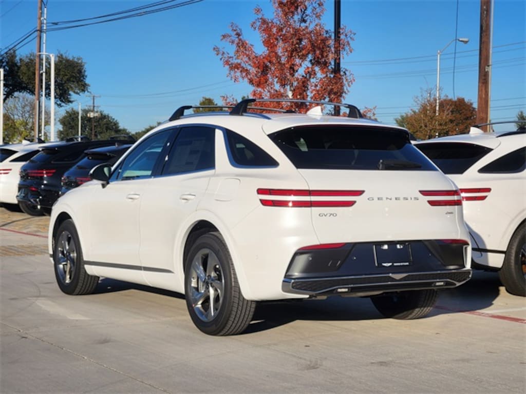 Uyuni White 2026 Genesis GV70 2.5T Advanced 4D Sport Utility 2.5T Advanced AWD 8-Speed Automatic with SHIFTRONIC 2.5L DOHC Option Group 01, 16 Speakers, 4-Wheel Disc Brakes, ABS brakes, Air Conditioning, Alloy wheels, AM/FM radio: SiriusXM, Android Auto & Apple CarPlay, Anti-whiplash front head restraints, Auto High-beam Headlights, Auto-dimming door mirrors, Auto-dimming Rear-View mirror, Automatic temperature control, Brake assist, Bumpers: body-color, Cargo Cover, Delay-off headlights, Driver door bin, Driver vanity mirror, Dual front impact airbags, Dual front side impact airbags, Electronic Stability Control, Emergency communication system: Genesis Connected Services, Exterior Parking Camera Rear, First Aid Kit, Four wheel independent suspension, Front anti-roll bar, Front Bucket Seats, Front Center Armrest w/Storage, Front dual zone A/C, Front reading lights, Fully automatic headlights, Garage door transmitter: HomeLink, Heated and Ventilated Front Bucket Seats, Heated door mirrors, Heated front seats, Heated steering wheel, Illuminated entry, Knee airbag, Leather Seating Surfaces, Leather steering wheel, Low tire pressure warning, Memory seat, Navigation System, Occupant sensing airbag, Outside temperature display, Overhead airbag, Overhead console, Panic alarm, Passenger door bin, Passenger vanity mirror, Power door mirrors, Power driver seat, Power Liftgate, Power moonroof, Power passenger seat, Power steering, Power windows, Radio: 14.5" Navigation System with AM/FM/HD, Rain sensing wipers, Rear anti-roll bar, Rear reading lights, Rear seat center armrest, Rear window defroster, Rear window wiper, Remote keyless entry, Roof Rack Cross Bars, Security system, Speed control, Speed-sensing steering, Speed-Sensitive Wipers, Split folding rear seat, Spoiler, Steering wheel memory, Steering wheel mounted audio controls, Tachometer, Telescoping steering wheel, Tilt steering wheel, Traction control, Trip computer, Turn signal indicator mirrors, Up Seatback Cargo Mat, Variably intermittent wipers, Ventilated front seats, and Wheels: 19" Light Hyper Silver Alloy.