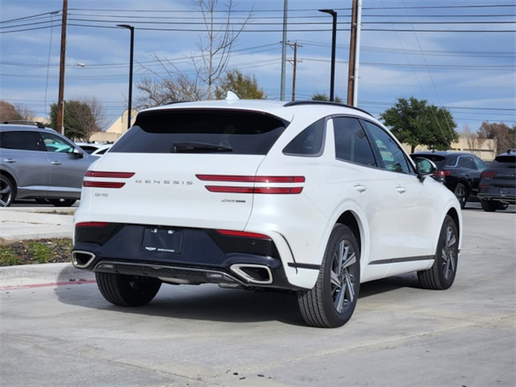 Uyuni White 2026 Genesis GV70 3.5T Sport Advanced 4D Sport Utility 3.5T Sport Advanced AWD 8-Speed Automatic with SHIFTRONIC 3.5L DOHC Option Group 01, 16 Speakers, 4-Wheel Disc Brakes, ABS brakes, Adaptive suspension, Air Conditioning, Alloy wheels, AM/FM radio: SiriusXM, Android Auto & Apple CarPlay, Anti-whiplash front head restraints, Auto High-beam Headlights, Auto-dimming door mirrors, Auto-dimming Rear-View mirror, Automatic temperature control, Brake assist, Bumpers: body-color, Cargo Block, Cargo Cover, Cargo Net, Cargo Tray, Delay-off headlights, Driver door bin, Driver vanity mirror, Dual front impact airbags, Dual front side impact airbags, Electronic Stability Control, Emergency communication system: Genesis Connected Services, Exterior Parking Camera Rear, First Aid Kit, Four wheel independent suspension, Front anti-roll bar, Front Bucket Seats, Front Center Armrest w/Storage, Front dual zone A/C, Front reading lights, Fully automatic headlights, Garage door transmitter: HomeLink, Heated and Ventilated Front Bucket Seats, Heated door mirrors, Heated front seats, Heated steering wheel, Illuminated entry, Knee airbag, Leather steering wheel, Low tire pressure warning, Memory seat, Navigation System, NFC Key Card, Occupant sensing airbag, Outside temperature display, Overhead airbag, Overhead console, Panic alarm, Passenger door bin, Passenger vanity mirror, Power door mirrors, Power driver seat, Power Liftgate, Power moonroof, Power passenger seat, Power steering, Power windows, Radio: 14.5" Navigation System with AM/FM/HD, Rain sensing wipers, Rear anti-roll bar, Rear reading lights, Rear seat center armrest, Rear window defroster, Rear window wiper, Remote keyless entry, Roadside Assistance Kit, Security system, Speed control, Speed-sensing steering, Speed-Sensitive Wipers, Split folding rear seat, Spoiler, Sport Leather Seating Surfaces, Steering wheel memory, Steering wheel mounted audio controls, Tachometer, Telescoping steering wheel, Tilt steering wheel, Traction control, Trip computer, Turn signal indicator mirrors, Variably intermittent wipers, Ventilated front seats, and Wheels: 19" Dark Metallic Glossy Alloy.