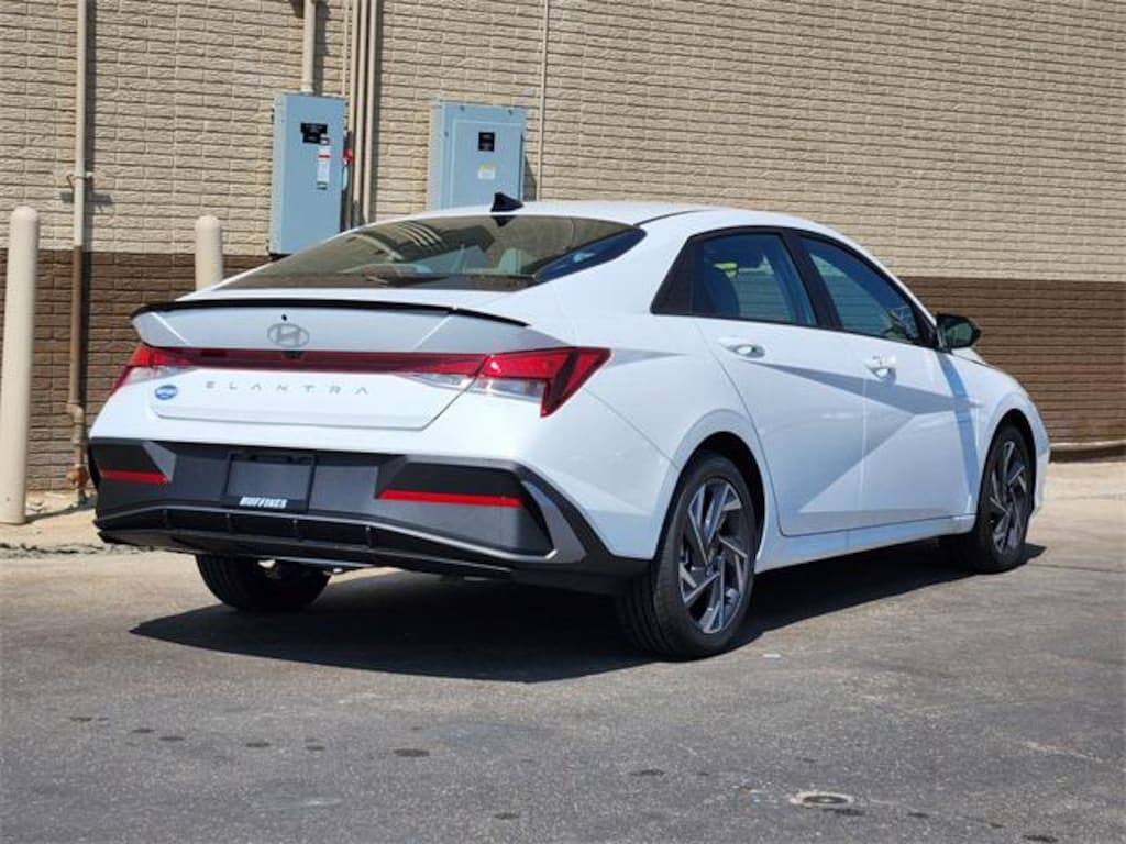 $750 off MSRP! New Price! White 2025 Hyundai Elantra SEL Sport 4D Sedan SEL Sport FWD CVT I4 Option Group 01, 17" x 7.0J Alloy Wheels, 4-Wheel Disc Brakes, 6 Speakers, ABS brakes, Air Conditioning, Alloy wheels, AM/FM radio, Apple CarPlay & Android Auto, Auto High-beam Headlights, Automatic temperature control, Brake assist, Bumpers: body-color, Cargo Net, Cargo Side Bins, Carpeted Floor Mats, Delay-off headlights, Driver door bin, Driver vanity mirror, Dual front impact airbags, Dual front side impact airbags, Electronic Stability Control, Exterior Parking Camera Rear, First Aid Kit, Front anti-roll bar, Front Bucket Seats, Front Center Armrest, Front dual zone A/C, Front reading lights, Front wheel independent suspension, Fully automatic headlights, Illuminated entry, Leather Shift Knob, Leather steering wheel, Low tire pressure warning, Occupant sensing airbag, Outside temperature display, Overhead airbag, Overhead console, Panic alarm, Passenger door bin, Passenger vanity mirror, Power door mirrors, Power steering, Power windows, Premium Cloth Seat Trim, Radio: AM/FM/HD Display Audio, Rear Bumper Applique, Rear side impact airbag, Rear window defroster, Remote keyless entry, Reversible Cargo Tray, Security system, Speed control, Speed-sensing steering, Spoiler, Steering wheel mounted audio controls, Tachometer, Telescoping steering wheel, Tilt steering wheel, Traction control, Trip computer, and Variably intermittent wipers.