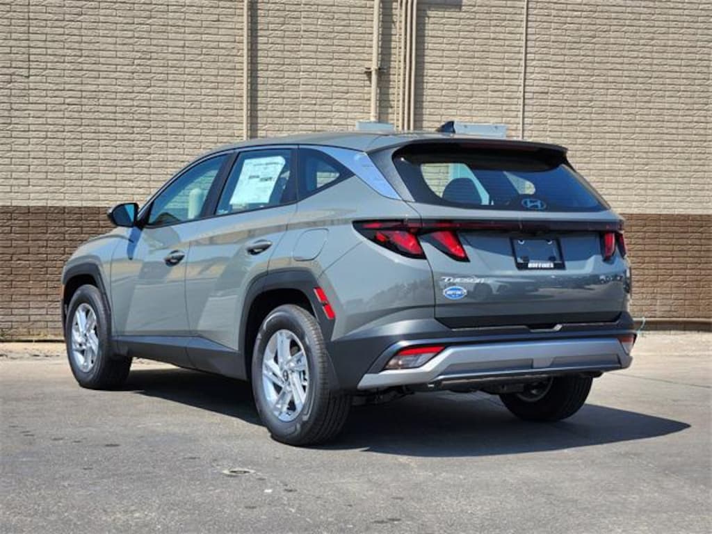 $1,750 off MSRP! New Price! Gray 2025 Hyundai Tucson SE 4D Sport Utility SE FWD 8-Speed Automatic with SHIFTRONIC 2.5L I4 DGI DOHC 16V LEV3-SULEV30 187hp Option Group 01, 17" Alloy Wheels, 4-Wheel Disc Brakes, 6 Speakers, ABS brakes, Air Conditioning, Alloy wheels, AM/FM radio: SiriusXM, Apple CarPlay & Android Auto, Auto High-beam Headlights, Brake assist, Bumpers: body-color, Cargo Blocks, Cargo Cover, Cargo Net, Cargo Organizer, Cargo Tray, Carpeted Floor Mats, Delay-off headlights, Driver door bin, Driver vanity mirror, Dual front impact airbags, Dual front side impact airbags, Electronic Stability Control, Emergency communication system: Bluelink+, First Aid Kit, Four wheel independent suspension, Front anti-roll bar, Front Bucket Seats, Front Center Armrest, Front reading lights, Fully automatic headlights, Illuminated entry, Low tire pressure warning, Mud Guards, Occupant sensing airbag, Outside temperature display, Overhead airbag, Overhead console, Panic alarm, Passenger door bin, Passenger vanity mirror, Power door mirrors, Power steering, Power windows, Radio data system, Radio: AM/FM/HD Audio System, Rear anti-roll bar, Rear reading lights, Rear seat center armrest, Rear side impact airbag, Rear window defroster, Rear window wiper, Remote keyless entry, Roadside Assistance Kit, Security system, Speed control, Split folding rear seat, Spoiler, Stain & Odor Resistant Cloth Seat Trim, Steering wheel mounted audio controls, Tachometer, Telescoping steering wheel, Tilt steering wheel, Traction control, Trip computer, and Variably intermittent wipers.