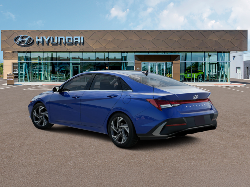 Intense Blue 2026 Hyundai Elantra Hybrid Limited 4D Sedan Limited FWD 6-Speed Dual Clutch I4 Option Group 01, 4-Wheel Disc Brakes, 8 Speakers, ABS brakes, Air Conditioning, Alloy wheels, AM/FM radio: SiriusXM, Apple CarPlay & Android Auto, Auto High-beam Headlights, Auto-dimming Rear-View mirror, Automatic temperature control, Brake assist, Bumpers: body-color, Cargo Net, Cargo Side Bins, Cargo Tray, Carpeted Floor Mats, Center Console Tray, Delay-off headlights, Driver door bin, Driver vanity mirror, Dual front impact airbags, Dual front side impact airbags, Electronic Stability Control, Emergency communication system: None, Exterior Parking Camera Rear, First Aid Kit, Front anti-roll bar, Front Bucket Seats, Front Center Armrest, Front dual zone A/C, Front reading lights, Front wheel independent suspension, Fully automatic headlights, H-Tex Leatherette Seat Trim, Heated and Ventilated Front Bucket Seats, Heated door mirrors, Heated front seats, Illuminated entry, Low tire pressure warning, Memory seat, Navigation System, Occupant sensing airbag, Outside temperature display, Overhead airbag, Overhead console, Panic alarm, Passenger door bin, Passenger vanity mirror, Power door mirrors, Power driver seat, Power moonroof, Power steering, Power windows, Radio: AM/FM/HD/SiriusXM Display Audio, Rear Bumper Applique, Rear seat center armrest, Rear side impact airbag, Rear window defroster, Remote keyless entry, Security system, Speed control, Speed-sensing steering, Split folding rear seat, Steering wheel mounted audio controls, Tachometer, Telescoping steering wheel, Tilt steering wheel, Traction control, Trip computer, Turn signal indicator mirrors, Variably intermittent wipers, Ventilated front seats, and Wheels: 17 x 7.0J Machine Finish Alloy.