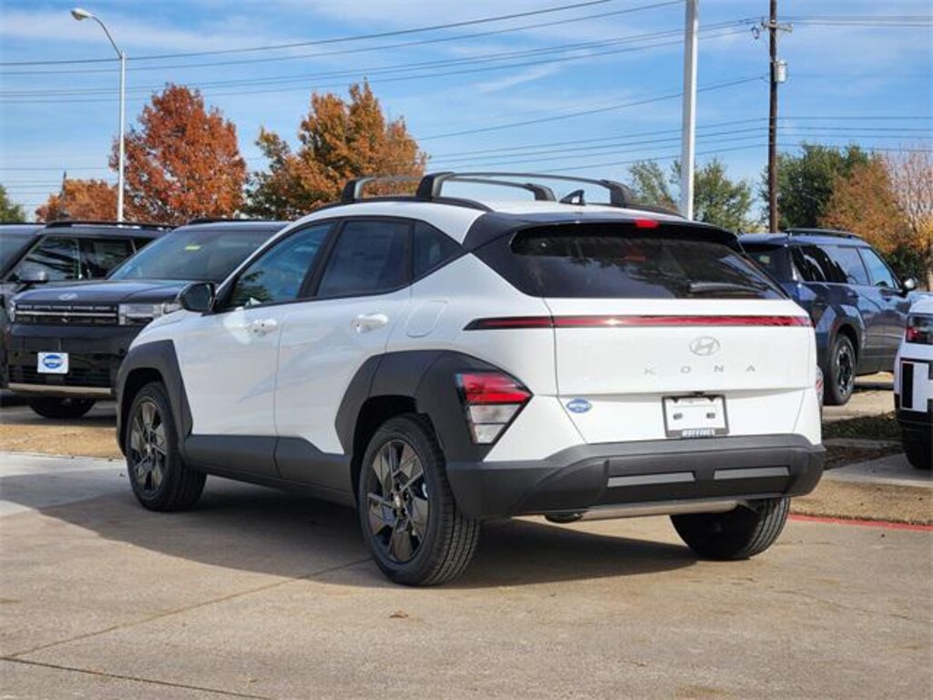 White 2026 Hyundai Kona SEL Sport 4D Sport Utility SEL Sport FWD CVT 2.0L I4 DOHC 16V Option Group 01, 4-Wheel Disc Brakes, 6 Speakers, ABS brakes, Air Conditioning, Alloy wheels, AM/FM radio: SiriusXM, Apple CarPlay & Android Auto, Auto High-beam Headlights, Automatic temperature control, Brake assist, Bumpers: body-color, Cargo Blocks, Cargo Tray, Cloth Seat Trim, Cross Rails, Delay-off headlights, Driver door bin, Driver vanity mirror, Dual front impact airbags, Dual front side impact airbags, Electronic Stability Control, Emergency communication system: None, Exterior Parking Camera Rear, First Aid Kit, Front anti-roll bar, Front Bucket Seats, Front Center Armrest, Front dual zone A/C, Front reading lights, Front wheel independent suspension, Fully automatic headlights, Heated door mirrors, Heated Front Bucket Seats, Heated front seats, Illuminated entry, Leather steering wheel, Low tire pressure warning, Occupant sensing airbag, Outside temperature display, Overhead airbag, Panic alarm, Passenger door bin, Passenger vanity mirror, Power door mirrors, Power steering, Power windows, Radio: AM/FM/SiriusXM/HD Audio System, Rear seat center armrest, Rear window defroster, Rear window wiper, Remote keyless entry, Road Assistance Kit, Security system, Severe Weather Kit, Speed control, Speed-sensing steering, Split folding rear seat, Spoiler, Steering wheel mounted audio controls, Tachometer, Telescoping steering wheel, Tilt steering wheel, Traction control, Trip computer, Variably intermittent wipers, and Wheels: 18" x 7.0J Black Alloy.