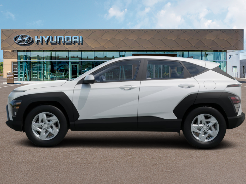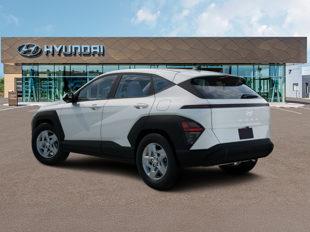 White 2026 Hyundai Kona SE 4D Sport Utility SE FWD CVT 2.0L I4 DOHC 16V Option Group 01, 4-Wheel Disc Brakes, 6 Speakers, ABS brakes, Air Conditioning, Alloy wheels, AM/FM radio: SiriusXM, Apple CarPlay & Android Auto, Auto High-beam Headlights, Brake assist, Bumpers: body-color, Cargo Net, Carpeted Floor Mats, Cloth Seat Trim, Delay-off headlights, Driver door bin, Driver vanity mirror, Dual front impact airbags, Dual front side impact airbags, Electronic Stability Control, Emergency communication system: Bluelink+, Exterior Parking Camera Rear, Front anti-roll bar, Front Bucket Seats, Front Center Armrest, Front reading lights, Front wheel independent suspension, Fully automatic headlights, Illuminated entry, Lifestyle Hitch, Low tire pressure warning, Occupant sensing airbag, Outside temperature display, Overhead airbag, Panic alarm, Passenger door bin, Passenger vanity mirror, Power door mirrors, Power steering, Power windows, Radio: AM/FM/SiriusXM/HD Radio Audio System, Rear window defroster, Rear window wiper, Remote keyless entry, Security system, Speed control, Speed-sensing steering, Split folding rear seat, Spoiler, Steering wheel mounted audio controls, Tachometer, Telescoping steering wheel, Tilt steering wheel, Traction control, Trip computer, Variably intermittent wipers, and Wheels: 17" x 7.0J Steel Gray Alloy.