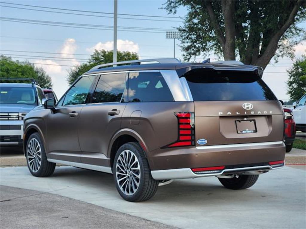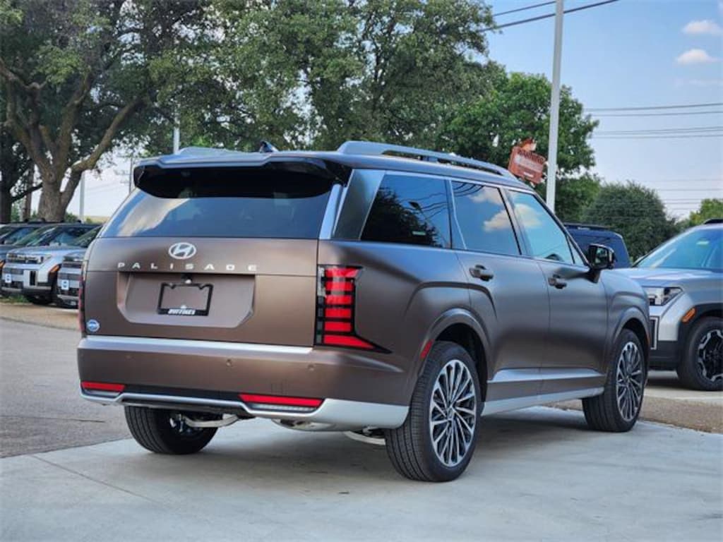 Earthy Brass Matte 2026 Hyundai Palisade Calligraphy 4D Sport Utility Calligraphy FWD 8-Speed Automatic V6 Option Group 01, 14 Speakers, 3rd row seats: split-bench, 4-Wheel Disc Brakes, ABS brakes, Air Conditioning, Alloy wheels, AM/FM radio: SiriusXM, Apple CarPlay & Android Auto, Audio memory, Auto High-beam Headlights, Auto-dimming door mirrors, Auto-dimming Rear-View mirror, Auto-leveling suspension, Automatic temperature control, Brake assist, Bumpers: body-color, Cargo Blocks, Cargo Cover, Cargo Net, Carpeted Floor Mats, Compass, Delay-off headlights, Driver door bin, Driver vanity mirror, Dual front impact airbags, Dual front side impact airbags, Electronic Stability Control, Emergency communication system: Bluelink+, Exterior Parking Camera Rear, First Aid Kit, Four wheel independent suspension, Front anti-roll bar, Front Bucket Seats, Front Center Armrest, Front dual zone A/C, Front reading lights, Fully automatic headlights, Garage door transmitter: HomeLink, Genuine wood console insert, Genuine wood dashboard insert, Heads-Up Display, Heated & Ventilated Front Bucket Seats, Heated door mirrors, Heated front seats, Heated rear seats, Heated steering wheel, HVAC memory, Illuminated entry, Knee airbag, Leather steering wheel, Low tire pressure warning, Memory seat, Navigation System, Occupant sensing airbag, Outside temperature display, Overhead airbag, Overhead console, Panic alarm, Passenger door bin, Passenger vanity mirror, Power door mirrors, Power driver seat, Power Liftgate, Power moonroof, Power passenger seat, Power steering, Power windows, Premium Nappa Leather Seat Trim, Radio data system, Radio: Infotainment Navigation System, Rain sensing wipers, Rear air conditioning, Rear anti-roll bar, Rear audio controls, Rear reading lights, Rear side impact airbag, Rear window defroster, Rear window wiper, Reclining 3rd row seat, Remote keyless entry, Roadside Assistance Kit, Security system, Speed control, Split folding rear seat, Spoiler, Steering wheel mounted audio controls, Tachometer, Telescoping steering wheel, Tilt steering wheel, Traction control, Trip computer, Turn signal indicator mirrors, Variably intermittent wipers, Ventilated front seats, Ventilated rear seats, and Wheels: 21" x 8.5J Alloy. Price includes: $1250 - Hyundai HMF Dealer Choice : $1250 discount and 5.99% APR for 24 months. $44.32 per $1000 financed. Available to well qualified buyers who finance through Hyundai Motor Finance. H704. Exp. 11/03/2025
