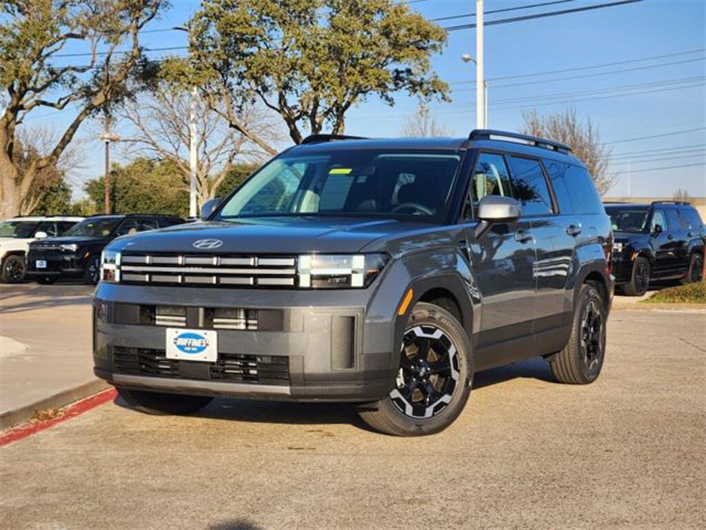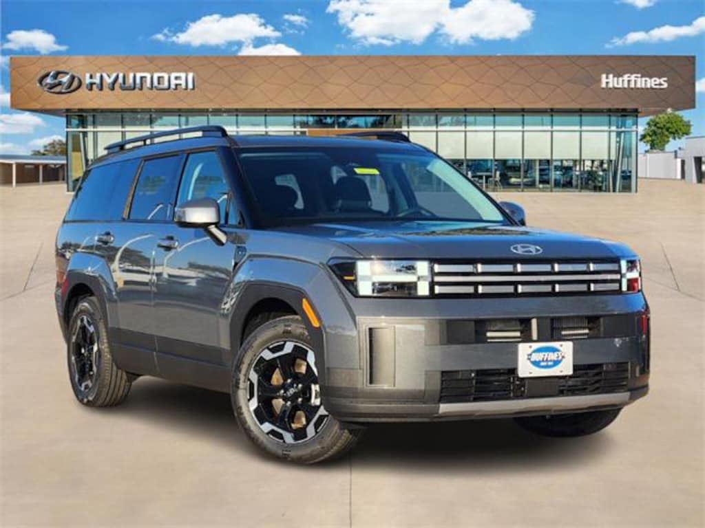 Gray 2026 Hyundai Santa Fe SEL 4D Sport Utility SEL FWD 8-Speed Automatic with SHIFTRONIC 2.5L I4 Option Group 01, 18" x 7.5J Alloy Wheels, 3rd row seats: bench, 4-Wheel Disc Brakes, 6 Speakers, ABS brakes, Air Conditioning, All Season Fitted Liners, Alloy wheels, AM/FM radio: SiriusXM, Apple CarPlay & Android Auto, Auto High-beam Headlights, Automatic temperature control, Brake assist, Bumpers: body-color, Cargo Cover/Screen, Cargo Net, Carpeted Floor Mats, Delay-off headlights, Driver door bin, Driver vanity mirror, Dual front impact airbags, Dual front side impact airbags, Electronic Stability Control, Emergency communication system, Exterior Parking Camera Rear, First Aid Kit, Four wheel independent suspension, Front anti-roll bar, Front Bucket Seats, Front Center Armrest, Front dual zone A/C, Front reading lights, Fully automatic headlights, H-Tex Leatherette Seat Trim, Heated door mirrors, Heated Front Bucket Seats, Heated front seats, Illuminated entry, Knee airbag, Leather steering wheel, Low tire pressure warning, Occupant sensing airbag, Outside temperature display, Overhead airbag, Overhead console, Panic alarm, Passenger door bin, Passenger vanity mirror, Power door mirrors, Power driver seat, Power Liftgate, Power steering, Power windows, Radio: AM/FM/HD Display Audio, Rear anti-roll bar, Rear seat center armrest, Rear side impact airbag, Rear window defroster, Rear window wiper, Remote keyless entry, Security system, Speed control, Speed-sensing steering, Split folding rear seat, Spoiler, Steering wheel mounted audio controls, Tachometer, Telescoping steering wheel, Tilt steering wheel, Traction control, Trip computer, Turn signal indicator mirrors, and Variably intermittent wipers.