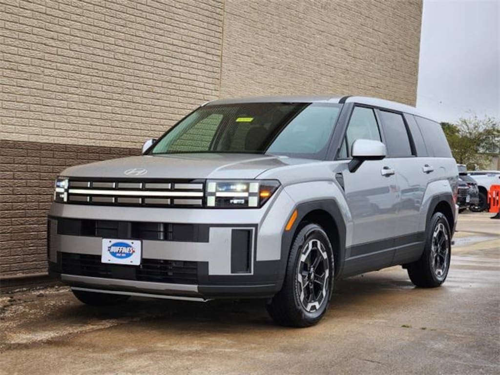 Shimmering Silver 2026 Hyundai Santa Fe SE 4D Sport Utility SE FWD 8-Speed Automatic with SHIFTRONIC 2.5L I4 Option Group 01, 18" x 7.5J Alloy Wheels, 3rd row seats: bench, 4-Wheel Disc Brakes, 6 Speakers, ABS brakes, Air Conditioning, Alloy wheels, AM/FM radio: SiriusXM, Apple CarPlay & Android Auto, Auto High-beam Headlights, Brake assist, Bumpers: body-color, Cargo Blocks, Cargo Cover/Screen, Cargo Net, Cargo Tray, Carpeted Floor Mats, Delay-off headlights, Driver door bin, Driver vanity mirror, Dual front impact airbags, Dual front side impact airbags, Electronic Stability Control, Emergency communication system, Exterior Parking Camera Rear, First Aid Kit, Four wheel independent suspension, Front anti-roll bar, Front Bucket Seats, Front Center Armrest, Front reading lights, Fully automatic headlights, Heated door mirrors, Illuminated entry, Knee airbag, Leather steering wheel, Low tire pressure warning, Occupant sensing airbag, Outside temperature display, Overhead airbag, Overhead console, Panic alarm, Passenger door bin, Passenger vanity mirror, Power door mirrors, Power Liftgate, Power steering, Power windows, Radio: AM/FM/HD Display Audio, Rear anti-roll bar, Rear seat center armrest, Rear side impact airbag, Rear window defroster, Rear window wiper, Remote keyless entry, Security system, Speed control, Speed-sensing steering, Split folding rear seat, Spoiler, Steering wheel mounted audio controls, Tachometer, Telescoping steering wheel, Tilt steering wheel, Traction control, Trip computer, Variably intermittent wipers, and YES Essentials Stain-Resistant Cloth Seat Trim. Price includes: $3500 - Hyundai HMF Dealer Choice : $3500 discount and 5.49% APR for 24 months. $44.09 per $1000 financed. Available to well qualified buyers who finance through Hyundai Motor Finance. H704. Exp. 01/02/2026