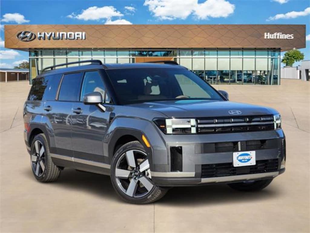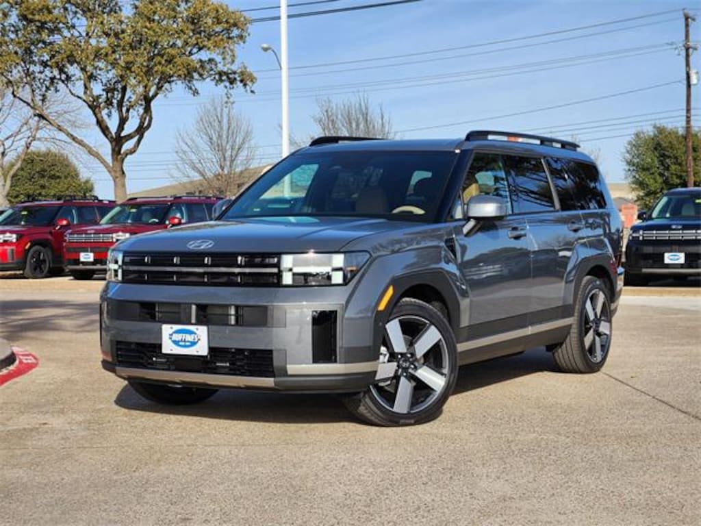 Gray 2026 Hyundai Santa Fe Hybrid Limited 4D Sport Utility Limited FWD 6-Speed Automatic with Shiftronic I4 Option Group 01, 12 Speakers, 3rd row seats: bench, 4-Wheel Disc Brakes, ABS brakes, Air Conditioning, Alloy wheels, AM/FM radio: SiriusXM, Apple CarPlay & Android Auto, Auto High-beam Headlights, Auto-dimming Rear-View mirror, Automatic temperature control, Brake assist, Bumpers: body-color, Cargo Blocks, Cargo Organizer, Carpeted Floor Mats, Delay-off headlights, Driver door bin, Driver vanity mirror, Dual front impact airbags, Dual front side impact airbags, Electronic Stability Control, Emergency communication system, Exterior Parking Camera Rear, First Aid Kit, Four wheel independent suspension, Front anti-roll bar, Front Bucket Seats, Front Center Armrest, Front dual zone A/C, Front reading lights, Fully automatic headlights, Garage door transmitter: HomeLink, Heated and Ventilated Front Bucket Seats, Heated door mirrors, Heated front seats, Heated rear seats, Heated steering wheel, Illuminated entry, Knee airbag, Leather Seat Trim, Leather steering wheel, Low tire pressure warning, Memory seat, Navigation System, Occupant sensing airbag, Outside temperature display, Overhead airbag, Overhead console, Panic alarm, Passenger door bin, Passenger vanity mirror, Power door mirrors, Power driver seat, Power Liftgate, Power moonroof, Power passenger seat, Power steering, Power windows, Radio: AM/FM/HD Bose Premium Audio System, Rain sensing wipers, Rear anti-roll bar, Rear side impact airbag, Rear window defroster, Rear window wiper, Remote keyless entry, Roof Rack Crossbars, Security system, Speed control, Speed-sensing steering, Split folding rear seat, Spoiler, Steering wheel mounted audio controls, Tachometer, Telescoping steering wheel, Tilt steering wheel, Traction control, Trip computer, Turn signal indicator mirrors, Variably intermittent wipers, Ventilated front seats, and Wheels: 20" x 8.5J Alloy.