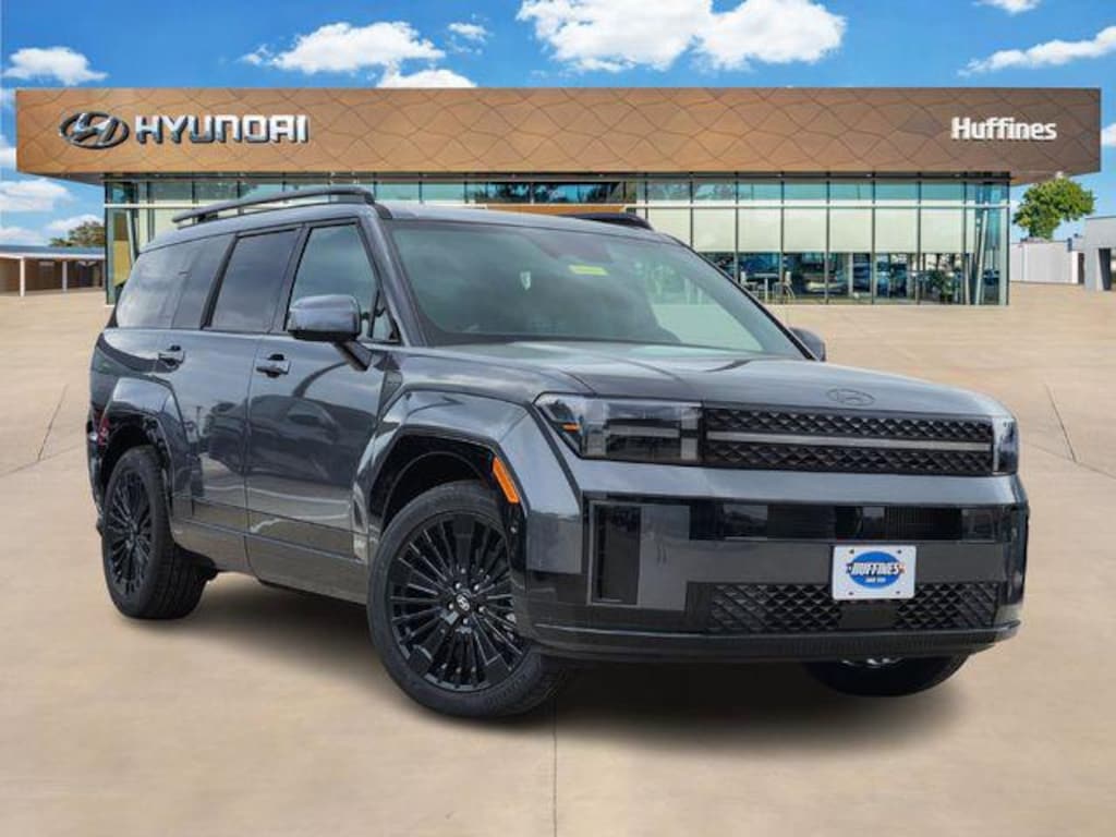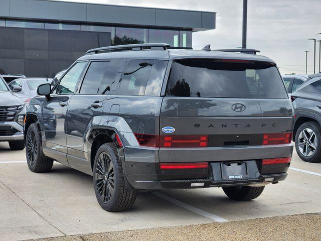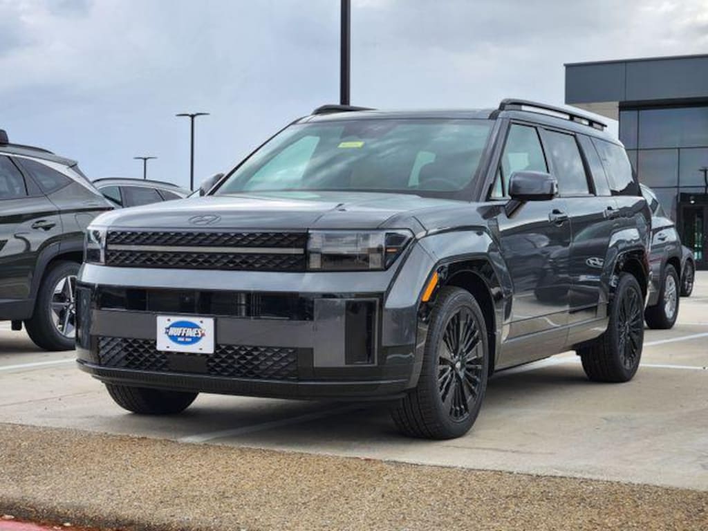 Gray 2026 Hyundai Santa Fe Hybrid Calligraphy 4D Sport Utility Calligraphy AWD 6-Speed Automatic with Shiftronic I4 Option Group 01, 12 Speakers, 3rd row seats: bench, 4-Wheel Disc Brakes, ABS brakes, Air Conditioning, Alloy wheels, AM/FM radio: SiriusXM, Apple CarPlay & Android Auto, Auto High-beam Headlights, Auto-dimming Rear-View mirror, Automatic temperature control, Brake assist, Bumpers: body-color, Cargo Blocks, Cargo Cover/Screen, Cargo Net, Cargo Organizer, Cargo Tray, Carpeted Floor Mats, Delay-off headlights, Driver door bin, Driver vanity mirror, Dual front impact airbags, Dual front side impact airbags, Electronic Stability Control, Emergency communication system, Exterior Parking Camera Rear, First Aid Kit, Four wheel independent suspension, Front anti-roll bar, Front Bucket Seats, Front Center Armrest, Front dual zone A/C, Front reading lights, Fully automatic headlights, Garage door transmitter: HomeLink, Heads-Up Display, Heated and Ventilated Front Bucket Seats, Heated door mirrors, Heated front seats, Heated rear seats, Heated steering wheel, Illuminated entry, Knee airbag, Leather steering wheel, Low tire pressure warning, Memory seat, Mudguards, Navigation System, Occupant sensing airbag, Outside temperature display, Overhead airbag, Overhead console, Panic alarm, Passenger door bin, Passenger vanity mirror, Power door mirrors, Power driver seat, Power Liftgate, Power moonroof, Power passenger seat, Power steering, Power windows, Quilted Premium Nappa Leather Seat Trim, Radio: AM/FM/HD Bose Premium Audio System, Rain sensing wipers, Rear anti-roll bar, Rear side impact airbag, Rear window defroster, Rear window wiper, Remote keyless entry, Security system, Severe Weather Kit, Speed control, Speed-sensing steering, Split folding rear seat, Spoiler, Steering wheel mounted audio controls, Tachometer, Telescoping steering wheel, Tilt steering wheel, Traction control, Trip computer, Turn signal indicator mirrors, Variably intermittent wipers, Ventilated front seats, and Wheels: 20" x 8.5J Unique Dark Finish Alloy.