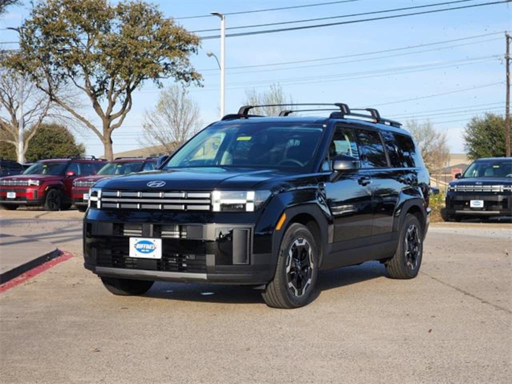 Phantom Black 2026 Hyundai Santa Fe SEL 4D Sport Utility SEL FWD 8-Speed Automatic with SHIFTRONIC 2.5L I4 Option Group 01, 18" x 7.5J Alloy Wheels, 3rd row seats: bench, 4-Wheel Disc Brakes, 6 Speakers, ABS brakes, Air Conditioning, Alloy wheels, AM/FM radio: SiriusXM, Apple CarPlay & Android Auto, Auto High-beam Headlights, Automatic temperature control, Brake assist, Bumpers: body-color, Cargo Cover/Screen, Cargo Net, Cargo Tray, Carpeted Floor Mats, Delay-off headlights, Driver door bin, Driver vanity mirror, Dual front impact airbags, Dual front side impact airbags, Electronic Stability Control, Emergency communication system, Exterior Parking Camera Rear, First Aid Kit, Four wheel independent suspension, Front anti-roll bar, Front Bucket Seats, Front Center Armrest, Front dual zone A/C, Front reading lights, Fully automatic headlights, H-Tex Leatherette Seat Trim, Heated door mirrors, Heated Front Bucket Seats, Heated front seats, Illuminated entry, Knee airbag, Leather steering wheel, Low tire pressure warning, Occupant sensing airbag, Outside temperature display, Overhead airbag, Overhead console, Panic alarm, Passenger door bin, Passenger vanity mirror, Power door mirrors, Power driver seat, Power Liftgate, Power steering, Power windows, Radio: AM/FM/HD Display Audio, Rear anti-roll bar, Rear seat center armrest, Rear side impact airbag, Rear window defroster, Rear window wiper, Remote keyless entry, Roof Rack Crossbars, Security system, Speed control, Speed-sensing steering, Split folding rear seat, Spoiler, Steering wheel mounted audio controls, Tachometer, Telescoping steering wheel, Tilt steering wheel, Traction control, Trip computer, Turn signal indicator mirrors, and Variably intermittent wipers.