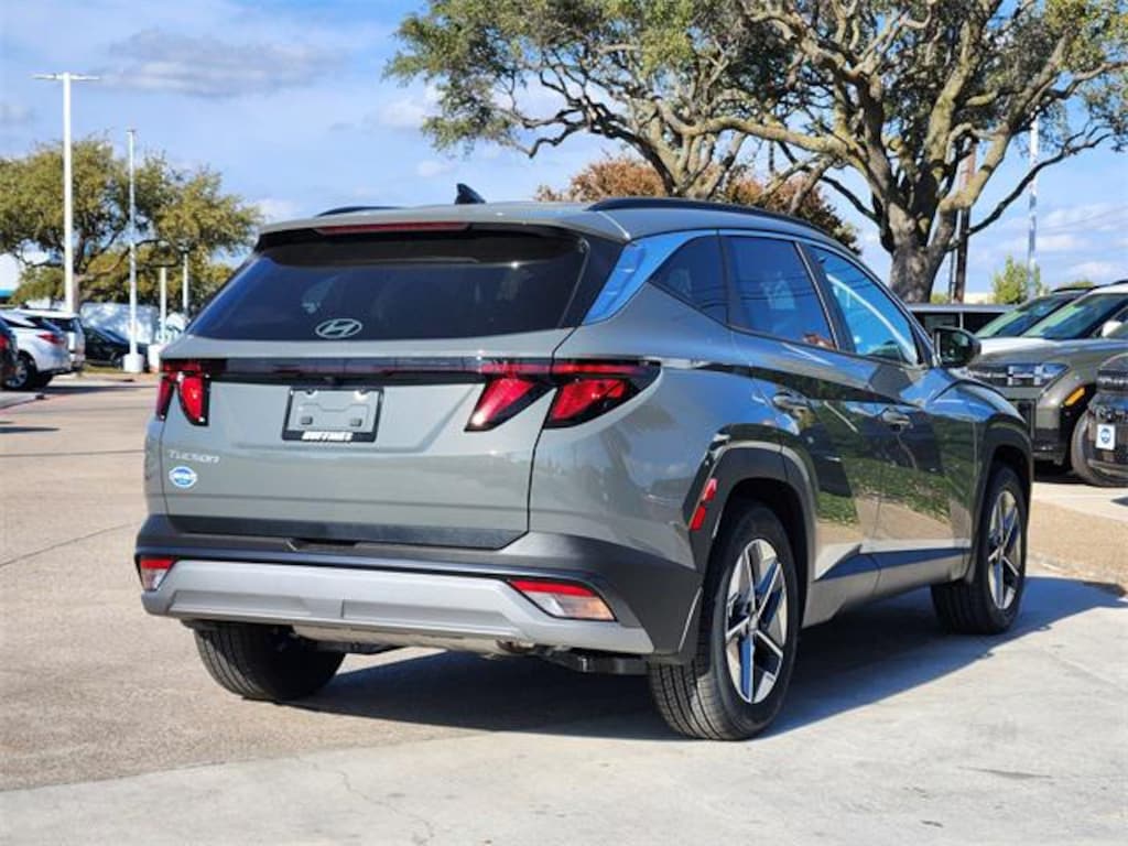 Gray 2026 Hyundai Tucson SEL 4D Sport Utility SEL FWD 8-Speed Automatic with SHIFTRONIC 2.5L I4 DGI DOHC 16V LEV3-SULEV30 187hp Option Group 01, 18" x 7.5J Alloy Wheels, 4-Wheel Disc Brakes, 6 Speakers, ABS brakes, Air Conditioning, All Season Fitted Liners, Alloy wheels, AM/FM radio: SiriusXM, Apple CarPlay & Android Auto, Auto High-beam Headlights, Automatic temperature control, Brake assist, Bumpers: body-color, Cargo Blocks, Cargo Cover, Cargo Net, Cargo Tray, Carpeted Floor Mats, Delay-off headlights, Driver door bin, Driver vanity mirror, Dual front impact airbags, Dual front side impact airbags, Electronic Stability Control, Emergency communication system: Bluelink+, First Aid Kit, Four wheel independent suspension, Front and Rear Mudguards, Front anti-roll bar, Front Bucket Seats, Front Center Armrest, Front dual zone A/C, Front reading lights, Fully automatic headlights, H-Tex Leatherette Seat Trim, Heated door mirrors, Heated Front Bucket Seats, Heated front seats, Illuminated entry, Low tire pressure warning, Occupant sensing airbag, Outside temperature display, Overhead airbag, Overhead console, Panic alarm, Passenger door bin, Passenger vanity mirror, Power door mirrors, Power driver seat, Power Liftgate, Power steering, Power windows, Radio data system, Radio: AM/FM/HD Audio System, Rear anti-roll bar, Rear reading lights, Rear seat center armrest, Rear side impact airbag, Rear window defroster, Rear window wiper, Remote keyless entry, Security system, Speed control, Split folding rear seat, Spoiler, Steering wheel mounted audio controls, Tachometer, Telescoping steering wheel, Tilt steering wheel, Traction control, Trip computer, and Variably intermittent wipers.
