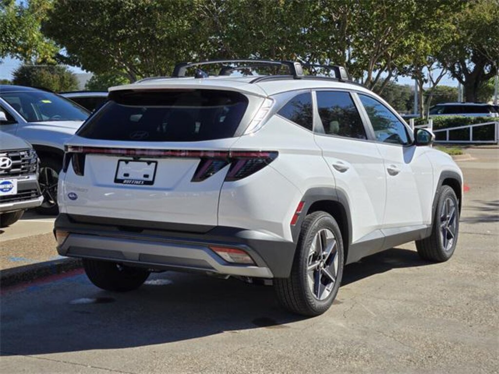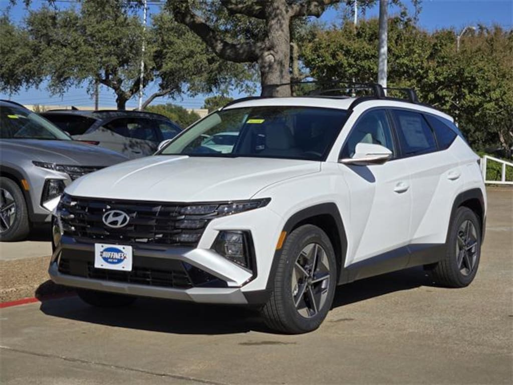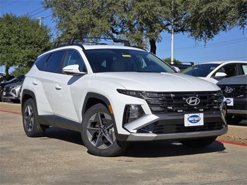 White Pearl 2026 Hyundai Tucson SEL 4D Sport Utility SEL FWD 8-Speed Automatic with SHIFTRONIC 2.5L I4 DGI DOHC 16V LEV3-SULEV30 187hp Option Group 01, 18" x 7.5J Alloy Wheels, 4-Wheel Disc Brakes, 6 Speakers, ABS brakes, Air Conditioning, Alloy wheels, AM/FM radio: SiriusXM, Apple CarPlay & Android Auto, Auto High-beam Headlights, Auto-dimming Rear-View mirror, Automatic temperature control, Brake assist, Bumpers: body-color, Cargo Cover, Cargo Net, Cargo Organizer, Cargo Tray, Carpeted Floor Mats, Delay-off headlights, Driver door bin, Driver vanity mirror, Dual front impact airbags, Dual front side impact airbags, Electronic Stability Control, Emergency communication system: Bluelink+, First Aid Kit, Four wheel independent suspension, Front anti-roll bar, Front Bucket Seats, Front Center Armrest, Front dual zone A/C, Front reading lights, Fully automatic headlights, H-Tex Leatherette Seat Trim, Heated door mirrors, Heated Front Bucket Seats, Heated front seats, Illuminated entry, Leather Shift Knob, Leather steering wheel, Low tire pressure warning, Navigation System, Occupant sensing airbag, Outside temperature display, Overhead airbag, Overhead console, Panic alarm, Passenger door bin, Passenger vanity mirror, Power door mirrors, Power driver seat, Power Liftgate, Power moonroof, Power steering, Power windows, Radio data system, Radio: AM/FM/HD Audio System, Rear anti-roll bar, Rear reading lights, Rear seat center armrest, Rear side impact airbag, Rear window defroster, Rear window wiper, Remote keyless entry, Roof Rack Cross Rails, Security system, Speed control, Split folding rear seat, Spoiler, Steering wheel mounted audio controls, Tachometer, Telescoping steering wheel, Tilt steering wheel, Traction control, Trip computer, Turn signal indicator mirrors, and Variably intermittent wipers.