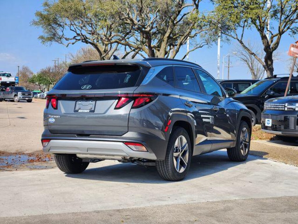 Gray 2026 Hyundai Tucson SEL 4D Sport Utility SEL FWD 8-Speed Automatic with SHIFTRONIC 2.5L I4 DGI DOHC 16V LEV3-SULEV30 187hp Option Group 01, 18" x 7.5J Alloy Wheels, 4-Wheel Disc Brakes, 6 Speakers, ABS brakes, Air Conditioning, All Season Fitted Liners, Alloy wheels, AM/FM radio: SiriusXM, Apple CarPlay & Android Auto, Auto High-beam Headlights, Automatic temperature control, Brake assist, Bumpers: body-color, Cargo Net, Cargo Tray, Carpeted Floor Mats, Cloth Seat Trim, Delay-off headlights, Driver door bin, Driver vanity mirror, Dual front impact airbags, Dual front side impact airbags, Electronic Stability Control, Emergency communication system: None, First Aid Kit, Four wheel independent suspension, Front anti-roll bar, Front Bucket Seats, Front Center Armrest, Front dual zone A/C, Front reading lights, Fully automatic headlights, Heated door mirrors, Heated Front Bucket Seats, Heated front seats, Illuminated entry, Low tire pressure warning, Occupant sensing airbag, Outside temperature display, Overhead airbag, Overhead console, Panic alarm, Passenger door bin, Passenger vanity mirror, Power door mirrors, Power driver seat, Power Liftgate, Power steering, Power windows, Radio data system, Radio: AM/FM/HD Audio System, Rear anti-roll bar, Rear reading lights, Rear seat center armrest, Rear side impact airbag, Rear window defroster, Rear window wiper, Remote keyless entry, Security system, Speed control, Split folding rear seat, Spoiler, Steering wheel mounted audio controls, Tachometer, Telescoping steering wheel, Tilt steering wheel, Traction control, Trip computer, and Variably intermittent wipers.