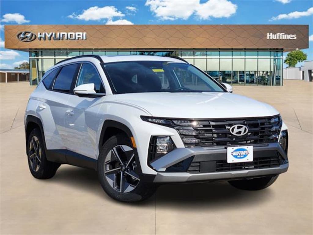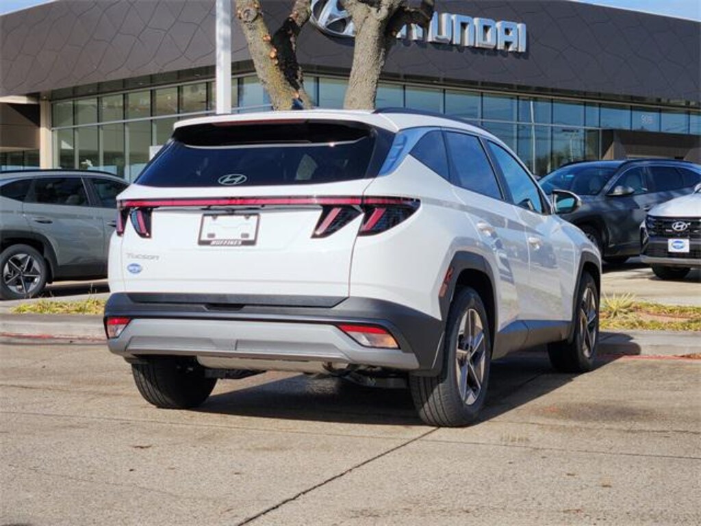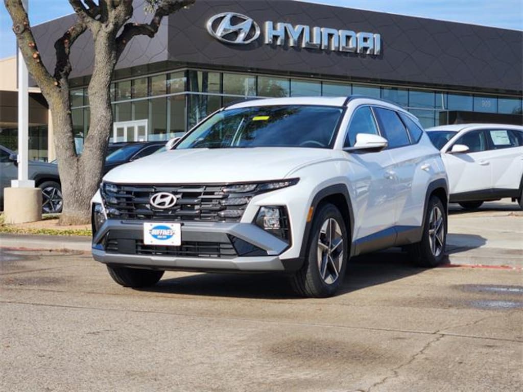 White Pearl 2026 Hyundai Tucson SEL Premium 4D Sport Utility SEL Premium FWD 8-Speed Automatic with SHIFTRONIC 2.5L I4 DGI DOHC 16V LEV3-SULEV30 187hp Option Group 01, 18" x 7.5J Alloy Wheels, 4-Wheel Disc Brakes, 6 Speakers, ABS brakes, Air Conditioning, Alloy wheels, AM/FM radio: SiriusXM, Apple CarPlay & Android Auto, Auto High-beam Headlights, Auto-dimming Rear-View mirror, Automatic temperature control, Brake assist, Bumpers: body-color, Cargo Net, Cargo Organizer, Cargo Tray, Carpeted Floor Mats, Delay-off headlights, Driver door bin, Driver vanity mirror, Dual front impact airbags, Dual front side impact airbags, Electronic Stability Control, Emergency communication system: Bluelink+, First Aid Kit, Four wheel independent suspension, Front and Rear Mudguards, Front anti-roll bar, Front Bucket Seats, Front Center Armrest, Front dual zone A/C, Front reading lights, Fully automatic headlights, H-Tex Leatherette Seat Trim, Heated door mirrors, Heated Front Bucket Seats, Heated front seats, Illuminated entry, Leather Shift Knob, Leather steering wheel, Low tire pressure warning, Navigation System, Occupant sensing airbag, Outside temperature display, Overhead airbag, Overhead console, Panic alarm, Passenger door bin, Passenger vanity mirror, Power door mirrors, Power driver seat, Power Liftgate, Power moonroof, Power steering, Power windows, Radio data system, Radio: AM/FM/HD Audio System, Rear anti-roll bar, Rear reading lights, Rear seat center armrest, Rear side impact airbag, Rear window defroster, Rear window wiper, Remote keyless entry, Roadside Assistance Kit, Security system, Speed control, Split folding rear seat, Spoiler, Steering wheel mounted audio controls, Tachometer, Telescoping steering wheel, Tilt steering wheel, Traction control, Trip computer, Turn signal indicator mirrors, and Variably intermittent wipers.