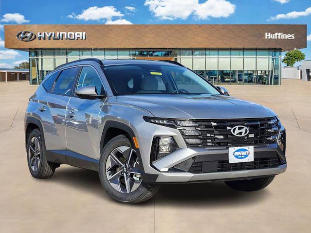 Shimmering Silver 2026 Hyundai Tucson SEL 4D Sport Utility SEL FWD 8-Speed Automatic with SHIFTRONIC 2.5L I4 DGI DOHC 16V LEV3-SULEV30 187hp Option Group 01, 18" x 7.5J Alloy Wheels, 4-Wheel Disc Brakes, 6 Speakers, ABS brakes, Air Conditioning, Alloy wheels, AM/FM radio: SiriusXM, Apple CarPlay & Android Auto, Auto High-beam Headlights, Automatic temperature control, Brake assist, Bumpers: body-color, Cargo Net, Cargo Tray, Carpeted Floor Mats, Cloth Seat Trim, Delay-off headlights, Driver door bin, Driver vanity mirror, Dual front impact airbags, Dual front side impact airbags, Electronic Stability Control, Emergency communication system: None, First Aid Kit, Four wheel independent suspension, Front anti-roll bar, Front Bucket Seats, Front Center Armrest, Front dual zone A/C, Front reading lights, Fully automatic headlights, Heated door mirrors, Heated Front Bucket Seats, Heated front seats, Illuminated entry, Low tire pressure warning, Occupant sensing airbag, Outside temperature display, Overhead airbag, Overhead console, Panic alarm, Passenger door bin, Passenger vanity mirror, Power door mirrors, Power driver seat, Power Liftgate, Power steering, Power windows, Radio data system, Radio: AM/FM/HD Audio System, Rear anti-roll bar, Rear reading lights, Rear seat center armrest, Rear side impact airbag, Rear window defroster, Rear window wiper, Remote keyless entry, Security system, Speed control, Split folding rear seat, Spoiler, Steering wheel mounted audio controls, Tachometer, Telescoping steering wheel, Tilt steering wheel, Tow Hitch, Traction control, Trip computer, and Variably intermittent wipers.