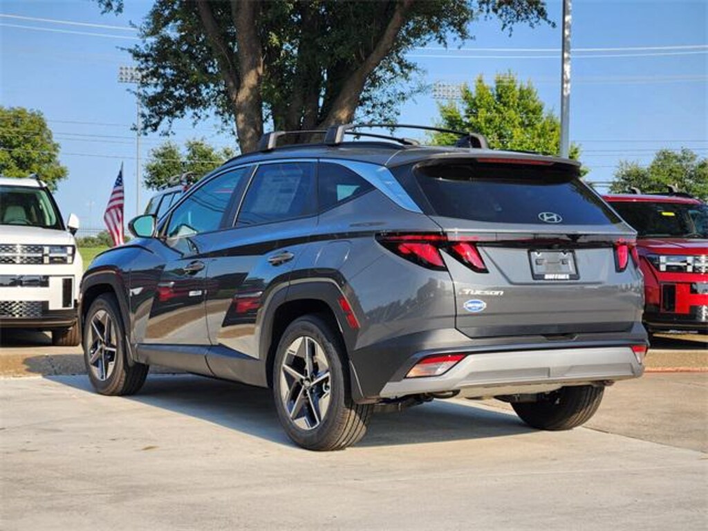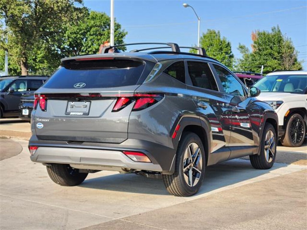Gray 2026 Hyundai Tucson SEL 4D Sport Utility SEL FWD 8-Speed Automatic with SHIFTRONIC 2.5L I4 DGI DOHC 16V LEV3-SULEV30 187hp Option Group 01, 18" x 7.5J Alloy Wheels, 4-Wheel Disc Brakes, 6 Speakers, ABS brakes, Air Conditioning, Alloy wheels, AM/FM radio: SiriusXM, Apple CarPlay & Android Auto, Auto High-beam Headlights, Automatic temperature control, Brake assist, Bumpers: body-color, Cargo Cover, Cargo Net, Cargo Tray, Carpeted Floor Mats, Delay-off headlights, Driver door bin, Driver vanity mirror, Dual front impact airbags, Dual front side impact airbags, Electronic Stability Control, Emergency communication system: Bluelink+, First Aid Kit, Four wheel independent suspension, Front and Rear Mudguards, Front anti-roll bar, Front Bucket Seats, Front Center Armrest, Front dual zone A/C, Front reading lights, Fully automatic headlights, H-Tex Leatherette Seat Trim, Heated door mirrors, Heated Front Bucket Seats, Heated front seats, Illuminated entry, Low tire pressure warning, Occupant sensing airbag, Outside temperature display, Overhead airbag, Overhead console, Panic alarm, Passenger door bin, Passenger vanity mirror, Power door mirrors, Power driver seat, Power Liftgate, Power steering, Power windows, Radio data system, Radio: AM/FM/HD Audio System, Rear anti-roll bar, Rear reading lights, Rear seat center armrest, Rear side impact airbag, Rear window defroster, Rear window wiper, Remote keyless entry, Roadside Assistance Kit, Roof Rack Cross Rails, Security system, Speed control, Split folding rear seat, Spoiler, Steering wheel mounted audio controls, Tachometer, Telescoping steering wheel, Tilt steering wheel, Traction control, Trip computer, and Variably intermittent wipers.