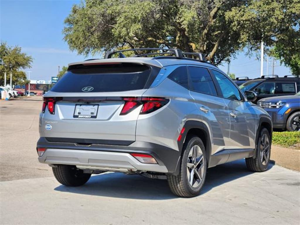 Shimmering Silver 2026 Hyundai Tucson SEL 4D Sport Utility SEL FWD 8-Speed Automatic with SHIFTRONIC 2.5L I4 DGI DOHC 16V LEV3-SULEV30 187hp Option Group 01, 18" x 7.5J Alloy Wheels, 4-Wheel Disc Brakes, 6 Speakers, ABS brakes, Air Conditioning, Alloy wheels, AM/FM radio: SiriusXM, Apple CarPlay & Android Auto, Auto High-beam Headlights, Automatic temperature control, Brake assist, Bumpers: body-color, Cargo Cover, Cargo Net, Cargo Tray, Carpeted Floor Mats, Delay-off headlights, Driver door bin, Driver vanity mirror, Dual front impact airbags, Dual front side impact airbags, Electronic Stability Control, Emergency communication system: Bluelink+, First Aid Kit, Four wheel independent suspension, Front and Rear Mudguards, Front anti-roll bar, Front Bucket Seats, Front Center Armrest, Front dual zone A/C, Front reading lights, Fully automatic headlights, H-Tex Leatherette Seat Trim, Heated door mirrors, Heated Front Bucket Seats, Heated front seats, Illuminated entry, Low tire pressure warning, Occupant sensing airbag, Outside temperature display, Overhead airbag, Overhead console, Panic alarm, Passenger door bin, Passenger vanity mirror, Power door mirrors, Power driver seat, Power Liftgate, Power steering, Power windows, Radio data system, Radio: AM/FM/HD Audio System, Rear anti-roll bar, Rear reading lights, Rear seat center armrest, Rear side impact airbag, Rear window defroster, Rear window wiper, Remote keyless entry, Roadside Assistance Kit, Roof Rack Cross Rails, Security system, Speed control, Split folding rear seat, Spoiler, Steering wheel mounted audio controls, Tachometer, Telescoping steering wheel, Tilt steering wheel, Traction control, Trip computer, and Variably intermittent wipers.