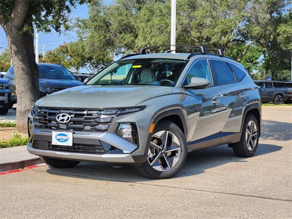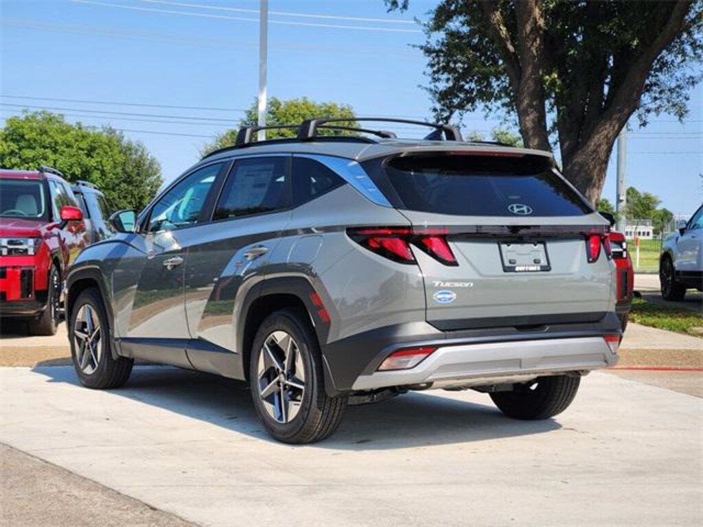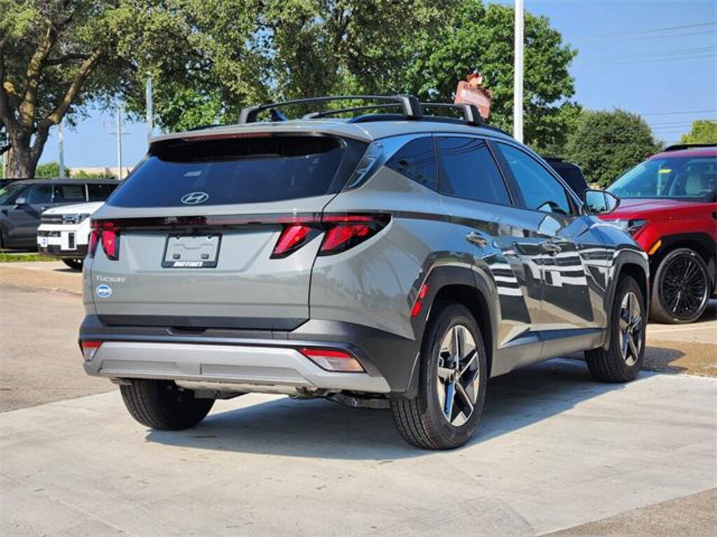 Gray 2026 Hyundai Tucson SEL 4D Sport Utility SEL FWD 8-Speed Automatic with SHIFTRONIC 2.5L I4 DGI DOHC 16V LEV3-SULEV30 187hp Option Group 01, 18" x 7.5J Alloy Wheels, 4-Wheel Disc Brakes, 6 Speakers, ABS brakes, Air Conditioning, Alloy wheels, AM/FM radio: SiriusXM, Apple CarPlay & Android Auto, Auto High-beam Headlights, Automatic temperature control, Brake assist, Bumpers: body-color, Cargo Cover, Cargo Net, Cargo Tray, Carpeted Floor Mats, Delay-off headlights, Driver door bin, Driver vanity mirror, Dual front impact airbags, Dual front side impact airbags, Electronic Stability Control, Emergency communication system: Bluelink+, First Aid Kit, Four wheel independent suspension, Front and Rear Mudguards, Front anti-roll bar, Front Bucket Seats, Front Center Armrest, Front dual zone A/C, Front reading lights, Fully automatic headlights, H-Tex Leatherette Seat Trim, Heated door mirrors, Heated Front Bucket Seats, Heated front seats, Illuminated entry, Low tire pressure warning, Occupant sensing airbag, Outside temperature display, Overhead airbag, Overhead console, Panic alarm, Passenger door bin, Passenger vanity mirror, Power door mirrors, Power driver seat, Power Liftgate, Power steering, Power windows, Radio data system, Radio: AM/FM/HD Audio System, Rear anti-roll bar, Rear reading lights, Rear seat center armrest, Rear side impact airbag, Rear window defroster, Rear window wiper, Remote keyless entry, Roadside Assistance Kit, Roof Rack Cross Rails, Security system, Speed control, Split folding rear seat, Spoiler, Steering wheel mounted audio controls, Tachometer, Telescoping steering wheel, Tilt steering wheel, Traction control, Trip computer, and Variably intermittent wipers.