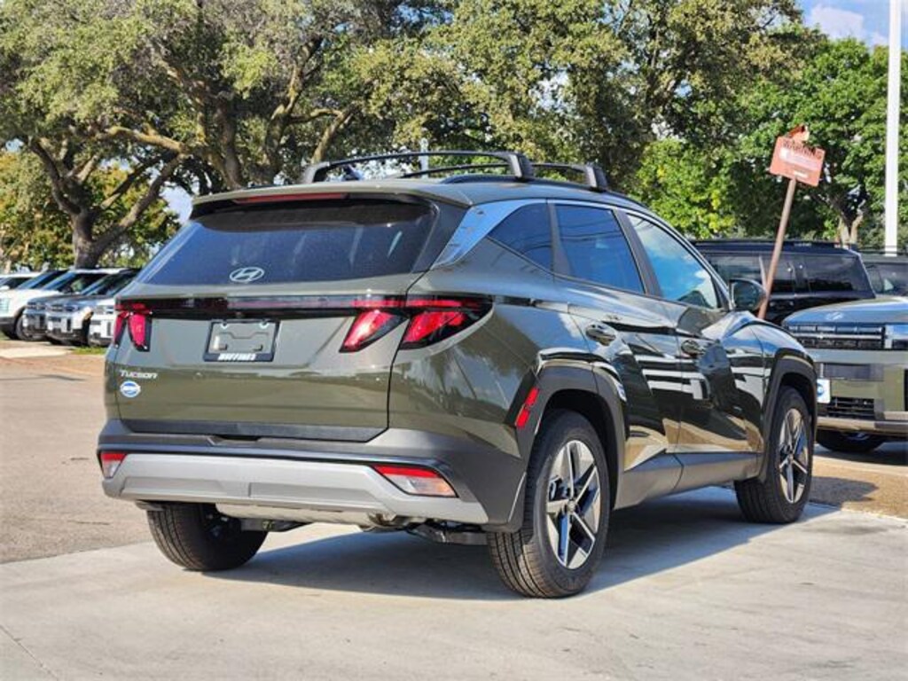 Green 2026 Hyundai Tucson SEL 4D Sport Utility SEL FWD 8-Speed Automatic with SHIFTRONIC 2.5L I4 DGI DOHC 16V LEV3-SULEV30 187hp Option Group 01, 18" x 7.5J Alloy Wheels, 4-Wheel Disc Brakes, 6 Speakers, ABS brakes, Air Conditioning, Alloy wheels, AM/FM radio: SiriusXM, Apple CarPlay & Android Auto, Auto High-beam Headlights, Automatic temperature control, Brake assist, Bumpers: body-color, Cargo Blocks, Cargo Cover, Cargo Net, Cargo Tray, Carpeted Floor Mats, Delay-off headlights, Driver door bin, Driver vanity mirror, Dual front impact airbags, Dual front side impact airbags, Electronic Stability Control, Emergency communication system: Bluelink+, First Aid Kit, Four wheel independent suspension, Front and Rear Mudguards, Front anti-roll bar, Front Bucket Seats, Front Center Armrest, Front dual zone A/C, Front reading lights, Fully automatic headlights, H-Tex Leatherette Seat Trim, Heated door mirrors, Heated Front Bucket Seats, Heated front seats, Illuminated entry, Low tire pressure warning, Occupant sensing airbag, Outside temperature display, Overhead airbag, Overhead console, Panic alarm, Passenger door bin, Passenger vanity mirror, Power door mirrors, Power driver seat, Power Liftgate, Power steering, Power windows, Radio data system, Radio: AM/FM/HD Audio System, Rear anti-roll bar, Rear reading lights, Rear seat center armrest, Rear side impact airbag, Rear window defroster, Rear window wiper, Remote keyless entry, Roof Rack Cross Rails, Security system, Speed control, Split folding rear seat, Spoiler, Steering wheel mounted audio controls, Tachometer, Telescoping steering wheel, Tilt steering wheel, Traction control, Trip computer, and Variably intermittent wipers.