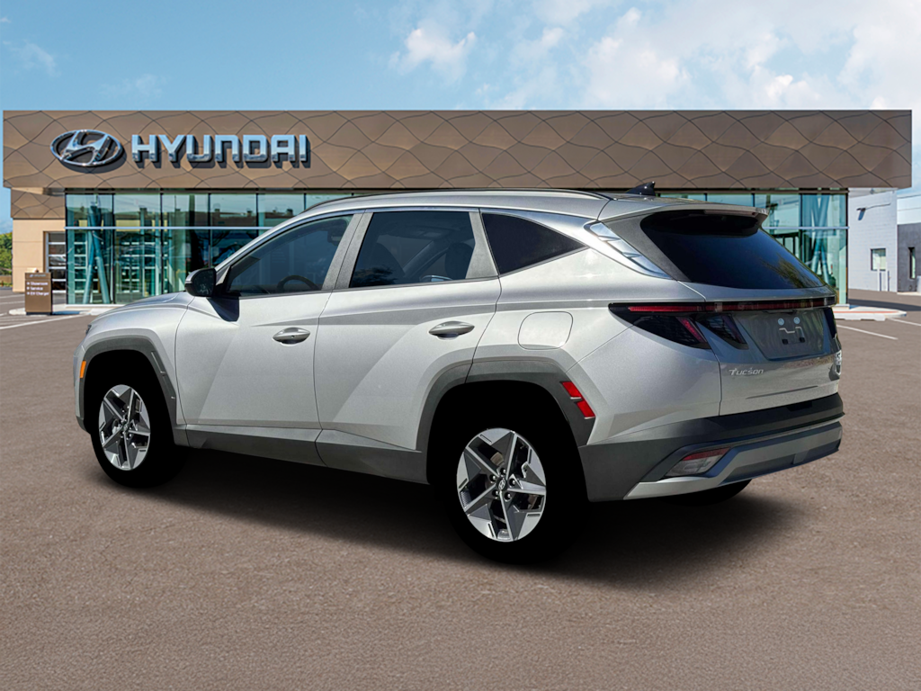 Shimmering Silver 2026 Hyundai Tucson Hybrid SEL Convenience 4D Sport Utility SEL Convenience AWD 6-Speed Automatic 1.6L I4 DGI Hybrid Turbocharged DOHC 16V LEV3-SULEV30 Option Group 01, 18" x 7.5J Alloy Wheels, 4-Wheel Disc Brakes, 6 Speakers, ABS brakes, Air Conditioning, Alloy wheels, AM/FM radio: SiriusXM, Apple CarPlay & Android Auto, Auto High-beam Headlights, Auto-dimming Rear-View mirror, Automatic temperature control, Brake assist, Bumpers: body-color, Cargo Net, Cargo Tray, Carpeted Floor Mats, Delay-off headlights, Driver door bin, Driver vanity mirror, Dual front impact airbags, Dual front side impact airbags, Electronic Stability Control, Emergency communication system: Bluelink+, First Aid Kit, Four wheel independent suspension, Front anti-roll bar, Front Bucket Seats, Front Center Armrest, Front dual zone A/C, Front reading lights, Fully automatic headlights, H-Tex Trimmed Seat Trim, Heated door mirrors, Heated Front Bucket Seats, Heated front seats, Illuminated entry, Leather steering wheel, Low tire pressure warning, Occupant sensing airbag, Outside temperature display, Overhead airbag, Overhead console, Panic alarm, Passenger door bin, Passenger vanity mirror, Power door mirrors, Power driver seat, Power Liftgate, Power steering, Power windows, Radio data system, Radio: AM/FM/HD Audio System, Rear anti-roll bar, Rear reading lights, Rear seat center armrest, Rear side impact airbag, Rear window defroster, Rear window wiper, Remote keyless entry, Roadside Assistance Kit, Security system, Speed control, Split folding rear seat, Spoiler, Steering wheel mounted audio controls, Tachometer, Telescoping steering wheel, Tilt steering wheel, Traction control, Trip computer, Turn signal indicator mirrors, and Variably intermittent wipers.