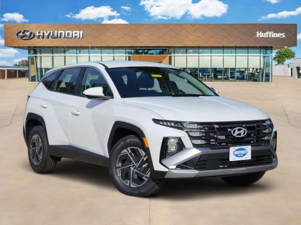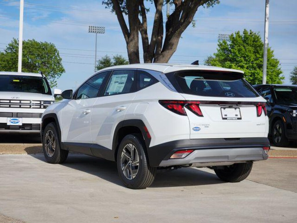 White Pearl 2026 Hyundai Tucson Hybrid Blue SE 4D Sport Utility Blue SE AWD 6-Speed Automatic 1.6L Turbo GDI 4-Cylinder Option Group 01, 17" x 7.0J Alloy Wheels, 4-Wheel Disc Brakes, 6 Speakers, ABS brakes, Air Conditioning, Alloy wheels, AM/FM radio: SiriusXM, Apple CarPlay & Android Auto, Auto High-beam Headlights, Automatic temperature control, Brake assist, Bumpers: body-color, Cargo Net, Carpeted Floor Mats, Delay-off headlights, Driver door bin, Driver vanity mirror, Dual front impact airbags, Dual front side impact airbags, Electronic Stability Control, Emergency communication system: None, Four wheel independent suspension, Front anti-roll bar, Front Bucket Seats, Front Center Armrest, Front dual zone A/C, Front reading lights, Fully automatic headlights, Illuminated entry, Low tire pressure warning, Occupant sensing airbag, Outside temperature display, Overhead airbag, Overhead console, Panic alarm, Passenger door bin, Passenger vanity mirror, Power door mirrors, Power steering, Power windows, Radio data system, Radio: AM/FM/HD Audio System, Rear anti-roll bar, Rear reading lights, Rear seat center armrest, Rear side impact airbag, Rear window defroster, Rear window wiper, Remote keyless entry, Security system, Speed control, Split folding rear seat, Spoiler, Stain and Odor Resistant Cloth Seat Trim, Steering wheel mounted audio controls, Tachometer, Telescoping steering wheel, Tilt steering wheel, Traction control, Trip computer, and Variably intermittent wipers.