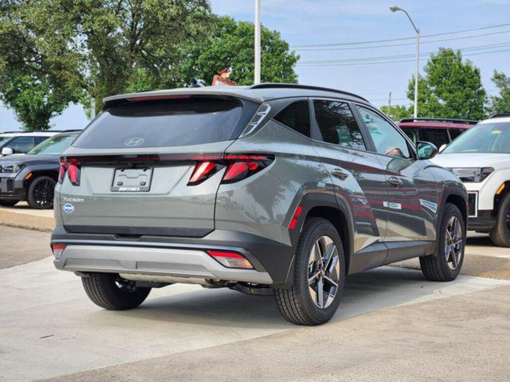 Gray 2026 Hyundai Tucson SEL 4D Sport Utility SEL FWD 8-Speed Automatic with SHIFTRONIC 2.5L I4 DGI DOHC 16V LEV3-SULEV30 187hp Option Group 01, 18" x 7.5J Alloy Wheels, 4-Wheel Disc Brakes, 6 Speakers, ABS brakes, Air Conditioning, All Season Fitted Liners, Alloy wheels, AM/FM radio: SiriusXM, Apple CarPlay & Android Auto, Auto High-beam Headlights, Automatic temperature control, Brake assist, Bumpers: body-color, Cargo Cover, Cargo Net, Cargo Tray, Carpeted Floor Mats, Cloth Seat Trim, Delay-off headlights, Driver door bin, Driver vanity mirror, Dual front impact airbags, Dual front side impact airbags, Electronic Stability Control, Emergency communication system: None, First Aid Kit, Four wheel independent suspension, Front anti-roll bar, Front Bucket Seats, Front Center Armrest, Front dual zone A/C, Front reading lights, Fully automatic headlights, Heated door mirrors, Heated Front Bucket Seats, Heated front seats, Illuminated entry, Low tire pressure warning, Mudguards, Occupant sensing airbag, Outside temperature display, Overhead airbag, Overhead console, Panic alarm, Passenger door bin, Passenger vanity mirror, Power door mirrors, Power driver seat, Power Liftgate, Power steering, Power windows, Radio data system, Radio: AM/FM/HD Audio System, Rear anti-roll bar, Rear reading lights, Rear seat center armrest, Rear side impact airbag, Rear window defroster, Rear window wiper, Remote keyless entry, Security system, Speed control, Split folding rear seat, Spoiler, Steering wheel mounted audio controls, Tachometer, Telescoping steering wheel, Tilt steering wheel, Traction control, Trip computer, and Variably intermittent wipers.