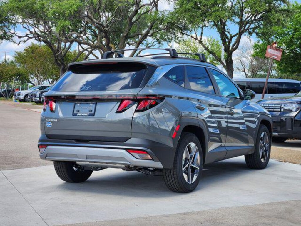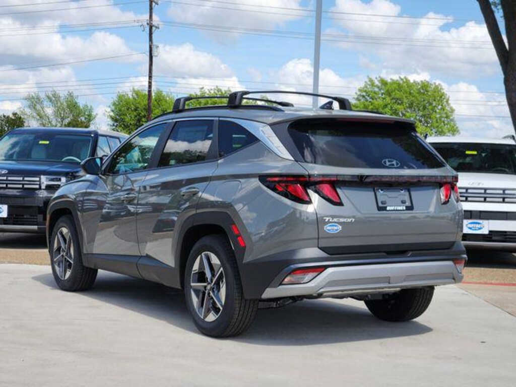 Gray 2026 Hyundai Tucson SEL 4D Sport Utility SEL FWD 8-Speed Automatic with SHIFTRONIC 2.5L I4 DGI DOHC 16V LEV3-SULEV30 187hp Option Group 01, 18" x 7.5J Alloy Wheels, 4-Wheel Disc Brakes, 6 Speakers, ABS brakes, Air Conditioning, Alloy wheels, AM/FM radio: SiriusXM, Apple CarPlay & Android Auto, Auto High-beam Headlights, Automatic temperature control, Brake assist, Bumpers: body-color, Cargo Net, Carpeted Floor Mats, Cloth Seat Trim, Cross Rails, Delay-off headlights, Driver door bin, Driver vanity mirror, Dual front impact airbags, Dual front side impact airbags, Electronic Stability Control, Emergency communication system: None, First Aid Kit, Four wheel independent suspension, Front anti-roll bar, Front Bucket Seats, Front Center Armrest, Front dual zone A/C, Front reading lights, Fully automatic headlights, Heated door mirrors, Heated Front Bucket Seats, Heated front seats, Illuminated entry, Low tire pressure warning, Occupant sensing airbag, Outside temperature display, Overhead airbag, Overhead console, Panic alarm, Passenger door bin, Passenger vanity mirror, Power door mirrors, Power driver seat, Power Liftgate, Power steering, Power windows, Radio data system, Radio: AM/FM/HD Audio System, Rear anti-roll bar, Rear reading lights, Rear seat center armrest, Rear side impact airbag, Rear window defroster, Rear window wiper, Remote keyless entry, Roadside Assistance Kit, Security system, Speed control, Split folding rear seat, Spoiler, Steering wheel mounted audio controls, Tachometer, Telescoping steering wheel, Tilt steering wheel, Traction control, Trip computer, and Variably intermittent wipers.