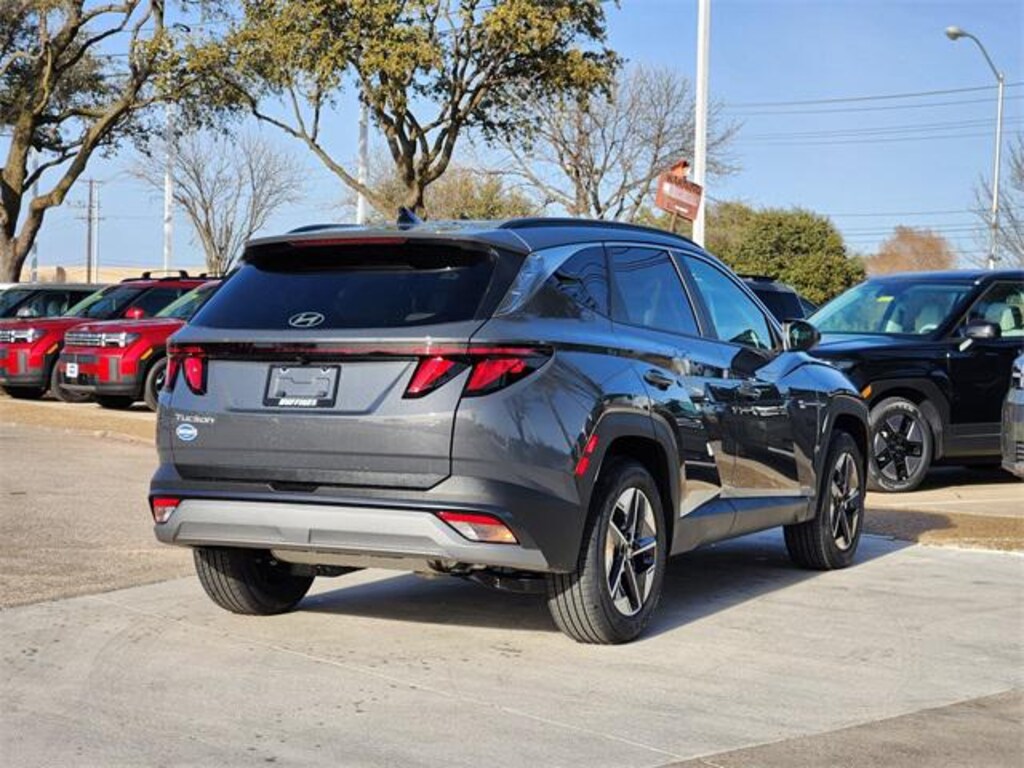Gray 2026 Hyundai Tucson SEL 4D Sport Utility SEL FWD 8-Speed Automatic with SHIFTRONIC 2.5L I4 DGI DOHC 16V LEV3-SULEV30 187hp Option Group 01, 18" x 7.5J Alloy Wheels, 4-Wheel Disc Brakes, 6 Speakers, ABS brakes, Air Conditioning, All Season Fitted Liners, Alloy wheels, AM/FM radio: SiriusXM, Apple CarPlay & Android Auto, Auto High-beam Headlights, Automatic temperature control, Brake assist, Bumpers: body-color, Cargo Net, Cargo Tray, Carpeted Floor Mats, Cloth Seat Trim, Delay-off headlights, Driver door bin, Driver vanity mirror, Dual front impact airbags, Dual front side impact airbags, Electronic Stability Control, Emergency communication system: None, First Aid Kit, Four wheel independent suspension, Front anti-roll bar, Front Bucket Seats, Front Center Armrest, Front dual zone A/C, Front reading lights, Fully automatic headlights, Heated door mirrors, Heated Front Bucket Seats, Heated front seats, Illuminated entry, Low tire pressure warning, Occupant sensing airbag, Outside temperature display, Overhead airbag, Overhead console, Panic alarm, Passenger door bin, Passenger vanity mirror, Power door mirrors, Power driver seat, Power Liftgate, Power steering, Power windows, Radio data system, Radio: AM/FM/HD Audio System, Rear anti-roll bar, Rear reading lights, Rear seat center armrest, Rear side impact airbag, Rear window defroster, Rear window wiper, Remote keyless entry, Security system, Speed control, Split folding rear seat, Spoiler, Steering wheel mounted audio controls, Tachometer, Telescoping steering wheel, Tilt steering wheel, Traction control, Trip computer, and Variably intermittent wipers.