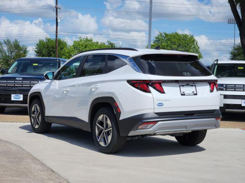 White Pearl 2026 Hyundai Tucson SEL 4D Sport Utility SEL FWD 8-Speed Automatic with SHIFTRONIC 2.5L I4 DGI DOHC 16V LEV3-SULEV30 187hp Option Group 01, 18" x 7.5J Alloy Wheels, 4-Wheel Disc Brakes, 6 Speakers, ABS brakes, Air Conditioning, Alloy wheels, AM/FM radio: SiriusXM, Apple CarPlay & Android Auto, Auto High-beam Headlights, Automatic temperature control, Brake assist, Bumpers: body-color, Cargo Net, Cargo Organizer, Cargo Tray, Carpeted Floor Mats, Cloth Seat Trim, Delay-off headlights, Driver door bin, Driver vanity mirror, Dual front impact airbags, Dual front side impact airbags, Electronic Stability Control, Emergency communication system: None, First Aid Kit, Four wheel independent suspension, Front anti-roll bar, Front Bucket Seats, Front Center Armrest, Front dual zone A/C, Front reading lights, Fully automatic headlights, Heated door mirrors, Heated Front Bucket Seats, Heated front seats, Illuminated entry, Low tire pressure warning, Occupant sensing airbag, Outside temperature display, Overhead airbag, Overhead console, Panic alarm, Passenger door bin, Passenger vanity mirror, Power door mirrors, Power driver seat, Power Liftgate, Power steering, Power windows, Radio data system, Radio: AM/FM/HD Audio System, Rear anti-roll bar, Rear reading lights, Rear seat center armrest, Rear side impact airbag, Rear window defroster, Rear window wiper, Remote keyless entry, Roadside Assistance Kit, Security system, Speed control, Split folding rear seat, Spoiler, Steering wheel mounted audio controls, Tachometer, Telescoping steering wheel, Tilt steering wheel, Traction control, Trip computer, and Variably intermittent wipers.
