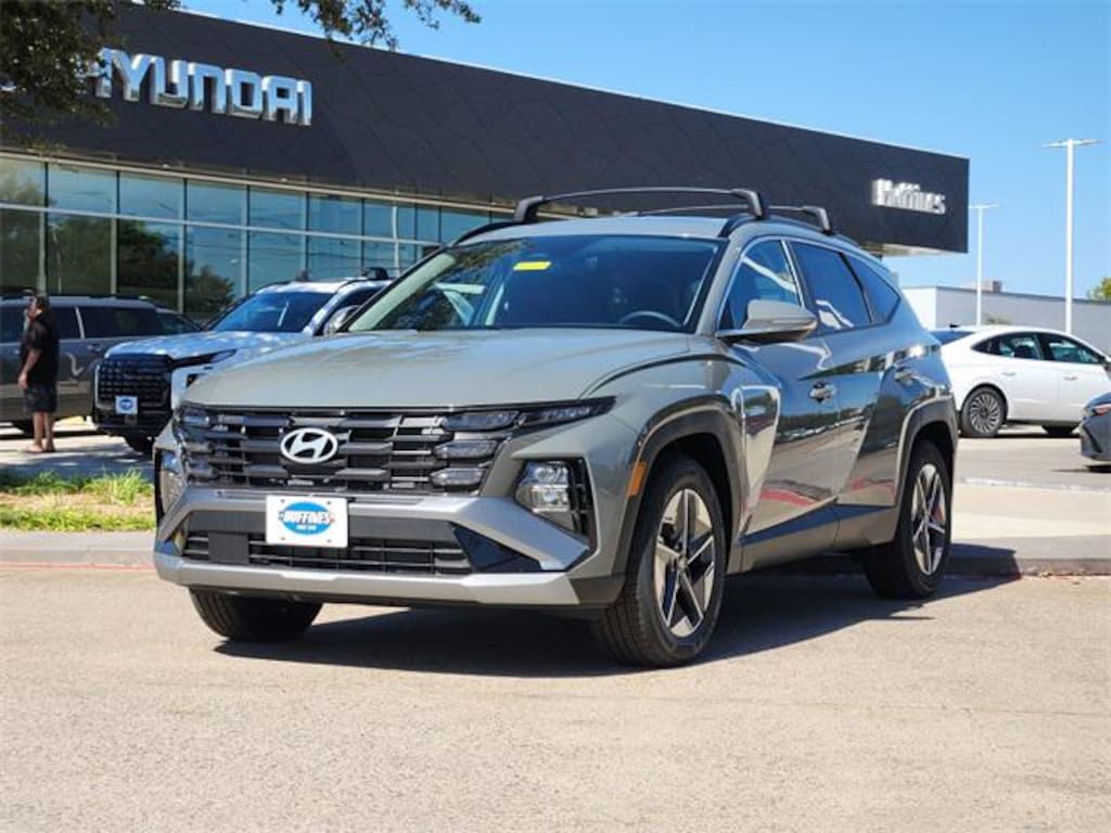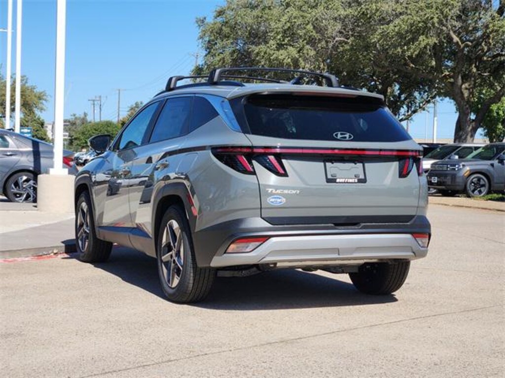 Gray 2026 Hyundai Tucson SEL Premium 4D Sport Utility SEL Premium FWD 8-Speed Automatic with SHIFTRONIC 2.5L I4 DGI DOHC 16V LEV3-SULEV30 187hp Option Group 01, 18" x 7.5J Alloy Wheels, 4-Wheel Disc Brakes, 6 Speakers, ABS brakes, Air Conditioning, Alloy wheels, AM/FM radio: SiriusXM, Apple CarPlay & Android Auto, Auto High-beam Headlights, Auto-dimming Rear-View mirror, Automatic temperature control, Brake assist, Bumpers: body-color, Cargo Cover, Cargo Net, Cargo Organizer, Cargo Tray, Carpeted Floor Mats, Delay-off headlights, Driver door bin, Driver vanity mirror, Dual front impact airbags, Dual front side impact airbags, Electronic Stability Control, Emergency communication system: Bluelink+, First Aid Kit, Four wheel independent suspension, Front anti-roll bar, Front Bucket Seats, Front Center Armrest, Front dual zone A/C, Front reading lights, Fully automatic headlights, H-Tex Leatherette Seat Trim, Heated door mirrors, Heated Front Bucket Seats, Heated front seats, Illuminated entry, Leather Shift Knob, Leather steering wheel, Low tire pressure warning, Navigation System, Occupant sensing airbag, Outside temperature display, Overhead airbag, Overhead console, Panic alarm, Passenger door bin, Passenger vanity mirror, Power door mirrors, Power driver seat, Power Liftgate, Power moonroof, Power steering, Power windows, Radio data system, Radio: AM/FM/HD Audio System, Rear anti-roll bar, Rear reading lights, Rear seat center armrest, Rear side impact airbag, Rear window defroster, Rear window wiper, Remote keyless entry, Roadside Assistance Kit, Roof Rack Cross Rails, Security system, Speed control, Split folding rear seat, Spoiler, Steering wheel mounted audio controls, Tachometer, Telescoping steering wheel, Tilt steering wheel, Traction control, Trip computer, Turn signal indicator mirrors, and Variably intermittent wipers.