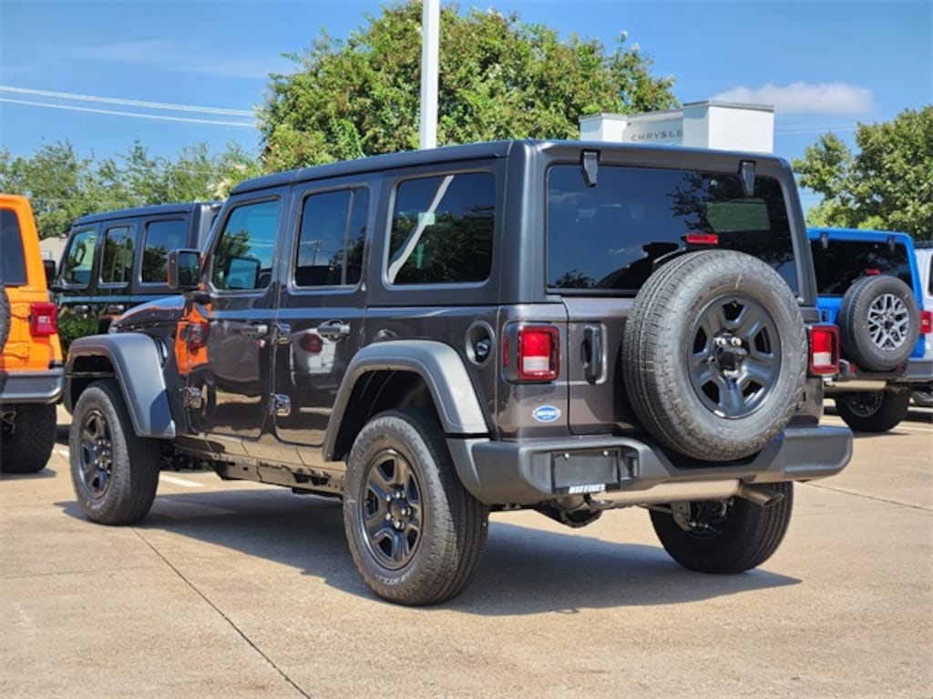 Granite Crystal Metallic Clearcoat Sport 4WD 8-Speed Automatic 2.0L I4 DOHC Quick Order Package 22B Sport, 110 MPH Vehicle Max Speed Calibration, 3.45 Overall Top Gear Ratio, 4-Wheel Disc Brakes, 8 Speakers, ABS brakes, Air Conditioning, AM/FM radio: SiriusXM, Apple CarPlay/Android Auto, Aux Battery, Black 3-Piece Hard Top, Brake assist, Cloth Low-Back Bucket Seats, Compass, Deep Tint Sunscreen Windows, Delay-off headlights, Driver door bin, Driver vanity mirror, Dual front impact airbags, Dual front side impact airbags, Electronic Stability Control, Freedom Panel Storage Bag, Front anti-roll bar, Front Bucket Seats, Front Center Armrest w/Storage, Front fog lights, Front reading lights, Illuminated entry, Integrated roll-over protection, Jeep Trail Rated Kit, Low tire pressure warning, MOPAR All-Weather Floor Mats, Non-Lock Fuel Cap w/o Discriminator, Normal Duty Suspension, Occupant sensing airbag, Outside temperature display, Overhead airbag, Panic alarm, ParkView Rear Back-Up Camera, Passenger door bin, Passenger vanity mirror, Power steering, Power windows, Radio data system, Radio: Uconnect 5 w/12.3" Display, Rear anti-roll bar, Rear reading lights, Rear Window Defroster, Rear Window Wiper/Washer, Remote keyless entry, Speed control, Split folding rear seat, Steering wheel mounted audio controls, Stop-Start Dual Battery System, Tachometer, Telescoping steering wheel, Tilt steering wheel, Traction control, Trip computer, Variably intermittent wipers, and Wheels: 17" x 7.5" Black Steel Styled.
