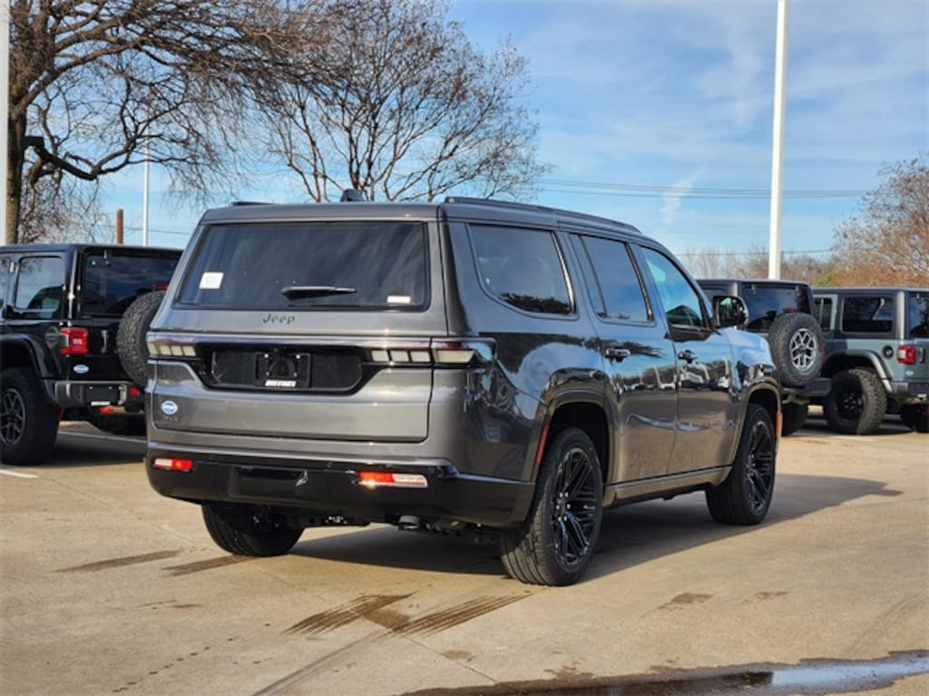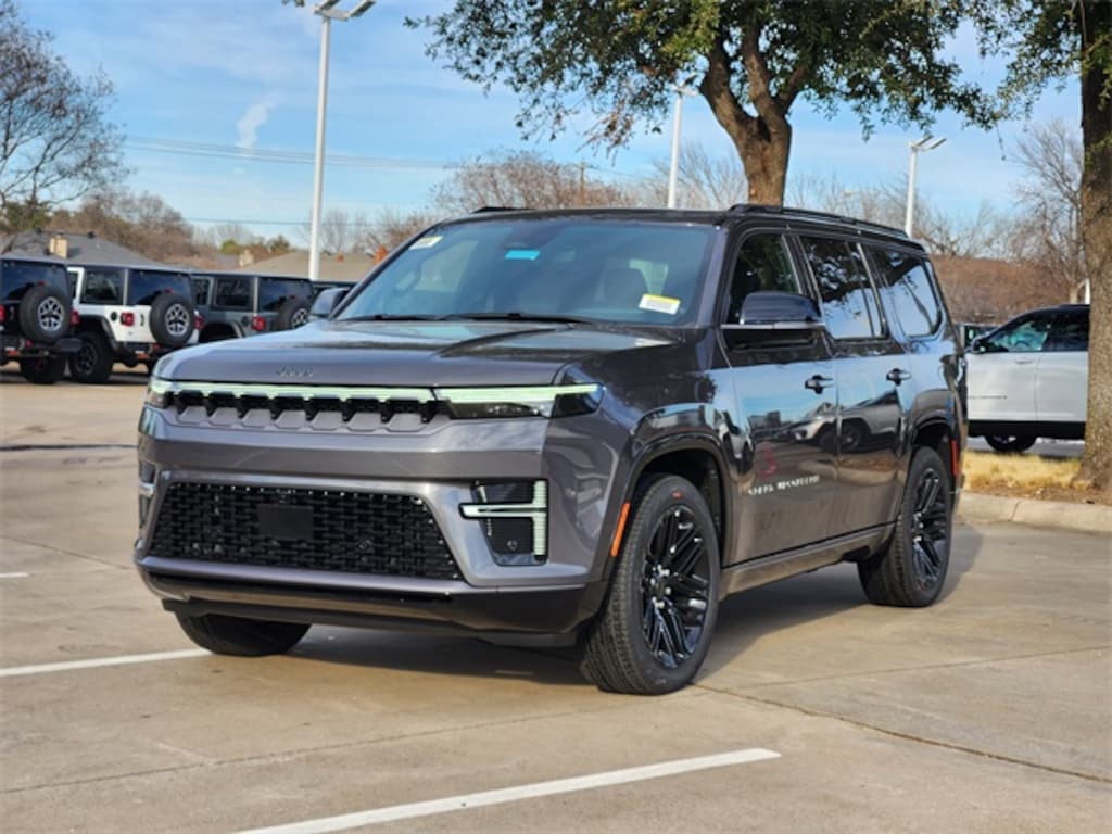 Baltic Gray Metallic Clearcoat 4WD 8-Speed Automatic 3.0L I6 Black Appearance Package (118 Mph Maximum Speed Calibration, Black Exterior Accents, Titanium Daylight Opening Upper, Titanium Upper Grille Applique, and Wheels: 22" x 9" Painted Gloss Black), Limited Reserve Package, Quick Order Package 29D Reserve (19 Speaker McIntosh Audio System, 2nd Row Manual Window Shades, 3 Panel Sunroof, Cargo Cover, Cluster 12" TFT Color Display, Heads-Up Display, Instrument Panel, Interior Rear Facing Camera, Luxury Front and Rear Floor Mats, P and P Park and Unpark Assist with Stop System, Power Deployable Running Boards, Quadra-Lift Air Suspension, Reversible Carpet/Vinyl Cargo Mat, Semi Active Damping, Side Distance Warning, Smartphone as a Key Prep, and Surround View Camera System), 3.55 Rear Axle Ratio, 3rd row seats: bench, 4-Wheel Disc Brakes, 9 Speakers, ABS brakes, Air Conditioning, Alloy wheels, AM/FM radio: SiriusXM with 360L, Anti-whiplash front head restraints, Apple CarPlay/Android Auto, Audio memory, Auto Adjust in Reverse Exterior Mirrors, Auto High-beam Headlights, Auto-dimming door mirrors, Auto-Dimming Exterior Driver Mirror, Auto-dimming Rear-View mirror, Auto-leveling suspension, Automatic temperature control, Brake assist, Bumpers: body-color, Compass, Delay-off headlights, Driver door bin, Driver vanity mirror, Driver's Seat Mounted Armrest, Dual front impact airbags, Dual front side impact airbags, Electronic Stability Control, Emergency communication system: Jeep Connect, Exterior Mirrors Approach Lamps, Exterior Mirrors with Memory, Exterior Mirrors with Supplemental Signals, Exterior Parking Camera Rear, Four wheel independent suspension, Front anti-roll bar, Front Bucket Seats, Front Center Armrest w/Storage, Front dual zone A/C, Front fog lights, Front reading lights, Fully automatic headlights, Garage door transmitter, Heated door mirrors, Heated Exterior Mirrors, Heated front seats, Heated rear seats, Heated steering wheel, Illuminated entry, Knee airbag, Leather Trimmed Bucket Seats, Low tire pressure warning, Manufacturer Statement of Origin, Memory seat, Navigation System, Normal Duty Suspension, Occupant sensing airbag, Outside temperature display, Overhead airbag, Overhead console, Panic alarm, Passenger door bin, Passenger seat mounted armrest, Passenger vanity mirror, Power door mirrors, Power driver seat, Power Liftgate, Power passenger seat, Power steering, Power windows, Radio data system, Radio: Uconnect 5 Nav with 12.0" Display, Rain sensing wipers, Rear air conditioning, Rear anti-roll bar, Rear reading lights, Rear seat center armrest, Rear window defroster, Rear window wiper, Reclining 3rd row seat, Remote keyless entry, Security system, Speed control, Speed-sensing steering, Speed-Sensitive Wipers, Split folding rear seat, Steering wheel memory, Steering wheel mounted audio controls, Tachometer, Telescoping steering wheel, Tilt steering wheel, Traction control, Trip computer, Turn signal indicator mirrors, Variably intermittent wipers, Ventilated front seats, Ventilated rear seats, and Voltmeter.