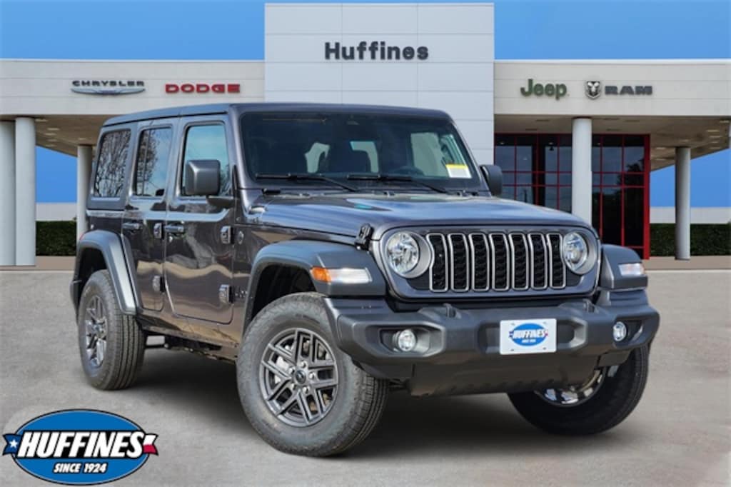 ranite Crystal Metallic Clearcoat Sport S 4WD 8-Speed Automatic 3.6L V6 24V VVT Convenience Group (2-Door Passive Entry, Front Door Locks, Air Conditioning with Auto Temp Control, Air Filtering, Cluster 7.0" TFT Color Display, Emergency/Assistance Call, Heated Front Seats, Heated Steering Wheel, and Universal Garage Door Opener), Quick Order Package 23S Sport S (Advanced Brake Assist, Automatic Headlamps, Corning Gorilla Glass, Deep Tint Sunscreen Windows, Enhanced Adaptive Cruise Control, Full Speed Forward Collision Warning Plus, Power Heated Mirrors, Premium Wrapped Steering Wheel, Security Alarm, Sun Visors with Illuminated Vanity Mirrors, and Wheels: 17" x 7.5" Gray), Quick Order Package 24S Sport S, 12.3" Touchscreen Display, 3.45 Overall Top Gear Ratio, 4-Wheel Disc Brakes, 4G LTE Wi-Fi Hot Spot, 8 Speakers, ABS brakes, Air Conditioning, AM/FM radio: SiriusXM with 360L, Apple CarPlay, Apple CarPlay/Android Auto, Aux Battery, Black 3-Piece Hard Top, Brake assist, Compass, Connectivity - US/Canada, Delay-off headlights, Driver door bin, Driver vanity mirror, Dual front impact airbags, Dual front side impact airbags, Electronic Stability Control, For More Info, Call 800-643-2112, Freedom Panel Storage Bag, Front anti-roll bar, Front Bucket Seats, Front Center Armrest w/Storage, Front fog lights, Front reading lights, Google Android Auto, Illuminated entry, Integrated Center Stack Radio, Integrated roll-over protection, Jeep Trail Rated Kit, Low tire pressure warning, MOPAR All-Weather Floor Mats, No Soft Top, Non-Lock Fuel Cap Without Discriminator, Normal Duty Suspension, Occupant sensing airbag, Outside temperature display, Overhead airbag, Panic alarm, ParkView Rear Back-Up Camera, Passenger door bin, Passenger vanity mirror, Power steering, Power windows, Radio data system, Radio: Uconnect 5 with 12.3" Display, Rear anti-roll bar, Rear reading lights, Rear Window Defroster, Rear Window Wiper/Washer, Remote keyless entry, SiriusXM Radio Service, SiriusXM with 360L, Speed control, Split folding rear seat, Steering wheel mounted audio controls, Stop-Start Dual Battery System, Tachometer, Telescoping steering wheel, Tilt steering wheel, Traction control, Trip computer, Variably intermittent wipers, and Wheels: 17" x 7.5" Black Steel Styled.