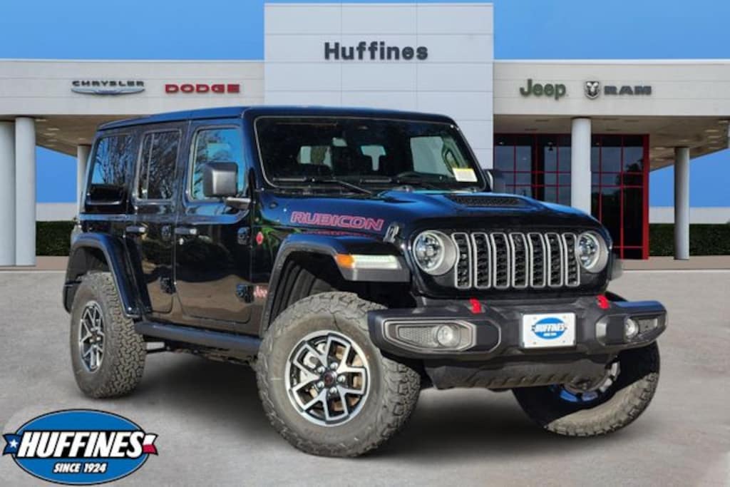 black clearcoat Rubicon 4WD 8-Speed Automatic 3.6L V6 24V VVT Convenience Group (Heated Front Seats, Heated Steering Wheel, and Universal Garage Door Opener), Quick Order Package 24R Rubicon, Safety Group (Auto High Beam Headlamp Control, Blind Spot and Cross Path Detection, and ParkSense Rear Park Assist System), Steel Performance Hood Package (Performance Hood), Technology Group (12.3" Touchscreen Display, 4G LTE Wi-Fi Hot Spot, Apple CarPlay, Auto-Dimming Rear-View Mirror, Connected Travel and Traffic Services, Connectivity - US/Canada, For More Info, Call 800-643-2112, Google Android Auto, GPS Navigation, HD Radio, Integrated Center Stack Radio, Integrated Off-Road Camera, Integrated Voice Command with Bluetooth, Radio: Uconnect 5 Navigation with 12.3" Display, SiriusXM Radio Service, and SiriusXM with 360L), 4-Wheel Disc Brakes, 4.10 Rear Axle Ratio, 8 Speakers, ABS brakes, Air Conditioning, Alloy wheels, Alpine Premium Audio System, AM/FM radio: SiriusXM with 360L, Apple CarPlay/Android Auto, Automatic temperature control, Aux Battery, Auxiliary Switches, Body Color 3-Piece Hard Top, Body Color Rubicon Highline Flare, Brake assist, Class II Receiver Hitch, Cloth Low-Back Bucket Seats, Compass, Delay-off headlights, Driver door bin, Driver vanity mirror, Dual front impact airbags, Dual front side impact airbags, Electronic Stability Control, Emergency communication system: Jeep Connect, Freedom Panel Storage Bag, Front anti-roll bar, Front Bucket Seats, Front Center Armrest w/Storage, Front dual zone A/C, Front fog lights, Front License Plate Bracket, Front reading lights, Fully automatic headlights, Heated door mirrors, Illuminated entry, Integrated roll-over protection, Jeep Trail Rated Kit, Low tire pressure warning, MOPAR All-Weather Floor Mats, No Soft Top, Non-Lock Fuel Cap Without Discriminator, Occupant sensing airbag, Outside temperature display, Overhead airbag, Panic alarm, ParkView Rear Back-Up Camera, Passenger door bin, Passenger vanity mirror, Performance Suspension, Power door mirrors, Power steering, Power windows, Radio data system, Radio: Uconnect 5 with 12.3" Display, Rear anti-roll bar, Rear reading lights, Rear Window Defroster, Rear Window Wiper/Washer, Remote keyless entry, Security system, Speed control, Split folding rear seat, Steering wheel mounted audio controls, Stop-Start Dual Battery System, Tachometer, Telescoping steering wheel, Tilt steering wheel, Traction control, Trip computer, Variably intermittent wipers, Voltmeter, and Wheels: 17" x 7.5" Machined/Painted Black.