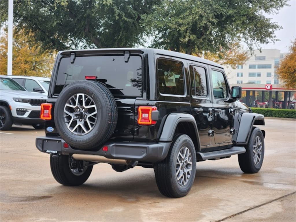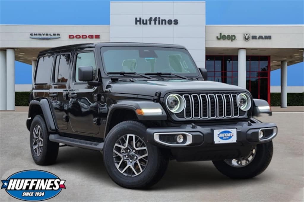 Black Clearcoat Sahara 4WD 8-Speed Automatic 3.6L V6 24V VVT Quick Order Package 24G, Sahara Popular Equipment Group (12.3" Touchscreen Display, 4G LTE Wi-Fi Hot Spot, Alpine Premium Audio System, Apple CarPlay, Auto High Beam Headlamp Control, Auto-Dimming Rear-View Mirror, Blind Spot & Cross Path Detection, Connected Travel & Traffic Services, Connectivity - US/Canada, For More Info, Call 800-643-2112, Google Android Auto, GPS Navigation, Hard Seat Back, HD Radio, Integrated Center Stack Radio, Integrated Off-Road Camera, Integrated Voice Command w/Bluetooth, Leather Wrapped Park Brake Handle, Leather Wrapped Shift Knob, McKinley Trimmed Seats, ParkSense Rear Park Assist System, Power 4-Way Driver Lumbar Adjust, Power 4-Way Passenger Lumbar Adjust, Power Adjust 8-Way Driver Seat, Power Adjust 8-Way Front Passenger Seat, Radio: Uconnect 5 Nav w/12.3" Display, Side Steps, SiriusXM Radio Service, SiriusXM w/360L, and Universal Garage Door Opener), 3.45 Overall Top Gear Ratio, 4-Wheel Disc Brakes, 8 Speakers, ABS brakes, Air Conditioning, Alloy wheels, AM/FM radio: SiriusXM with 360L, Apple CarPlay/Android Auto, Automatic temperature control, Aux Battery, Brake assist, Cloth Low-Back Bucket Seats, Compass, Delay-off headlights, Driver door bin, Driver vanity mirror, Dual front impact airbags, Dual front side impact airbags, Electronic Stability Control, Emergency communication system: Jeep Connect, Front anti-roll bar, Front Bucket Seats, Front Center Armrest w/Storage, Front dual zone A/C, Front fog lights, Front License Plate Bracket, Front reading lights, Fully automatic headlights, Heated door mirrors, Heated front seats, Heated steering wheel, Heavy Duty Suspension w/Gas Shocks, Illuminated entry, Integrated roll-over protection, Jeep Trail Rated Kit, Low tire pressure warning, MOPAR All-Weather Floor Mats, Non-Lock Fuel Cap w/o Discriminator, Occupant sensing airbag, Outside temperature display, Overhead airbag, Panic alarm, ParkView Rear Back-Up Camera, Passenger door bin, Passenger vanity mirror, Power door mirrors, Power steering, Power Top Quarter Window Storage Bag, Power windows, Radio data system, Radio: Uconnect 5 w/12.3" Display, Rear anti-roll bar, Rear reading lights, Rear Window Defroster, Rear Window Wiper/Washer, Remote keyless entry, Removable Rear Quarter Windows, Security system, Sky 1-Touch Power Top, Speed control, Split folding rear seat, Steering wheel mounted audio controls, Stop-Start Dual Battery System, Tachometer, Telescoping steering wheel, Tilt steering wheel, Traction control, Trip computer, Variably intermittent wipers, Voltmeter, and Wheels: 18" x 7.5" Machine/Painted Gray.