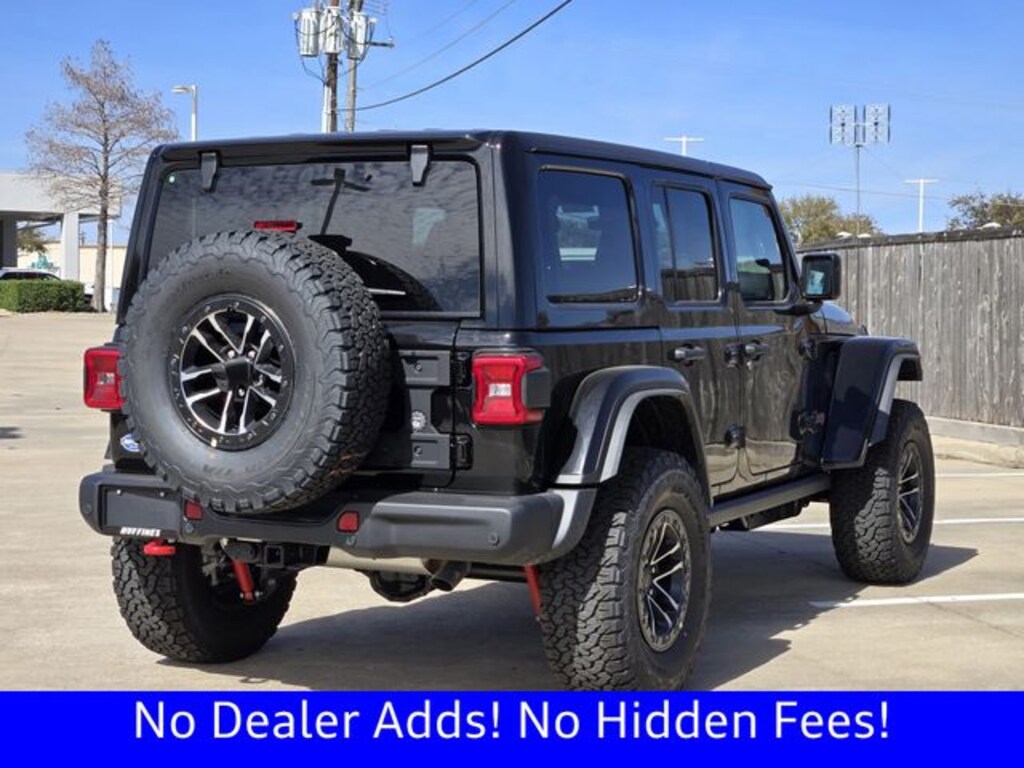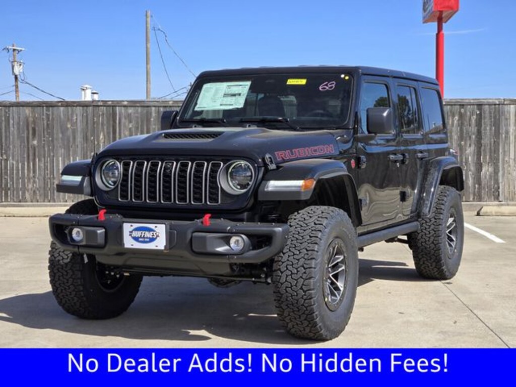 $3,847 off MSRP! Ask about our home delivery service! Touch-free car buying experience is available, call us today for details! Quick Order Package 24Y Rubicon X (12.3" Touchscreen Display, 4G LTE Wi-Fi Hot Spot, Acoustic Front Seat Area Carpet, Acoustic Laminated Front Door Glass, Alpine Premium Audio System, Apple CarPlay, Auto High Beam Headlamp Control, Auto-Dimming Rear-View Mirror, Blind Spot and Cross Path Detection, Body Color 3-Piece Hard Top, Body Color Rubicon Highline Flare, Connected Travel and Traffic Services, Connectivity - US/Canada, Freedom Panel Storage Bag, Google Android Auto, HD Radio, Heated Front Seats, Heated Steering Wheel, Integrated Off-Road Camera, Integrated Voice Command with Bluetooth, Leather Wrapped Park Brake Handle, Leather Wrapped Shift Knob, MOPAR Hardtop Headliner, Nappa Leather Seats, No Soft Top, ParkSense Rear Park Assist System, Power 4-Way Driver Lumbar Adjust, Power 4-Way Passenger Lumbar Adjust, Power Adjust 8-Way Driver Seat, Power Adjust 8-Way Front Passenger Seat, Premium Door Trim Panel, Radio: Uconnect 5 Navigation with 12.3" Display, Rear Window Defroster, Rear Window Wiper/Washer, SiriusXM with 360L, Steel Front Bumper, Steel Rear Bumper, and Universal Garage Door Opener), Steel Performance Hood Package (Performance Hood), Trailer Tow and Auxiliary Switch Group (Auxiliary Switches and Class II Receiver Hitch), Trailer Tow Prep Package, 35" Tire Suspension, 4-Wheel Disc Brakes, 8 Speakers, ABS brakes, Air Conditioning, Alloy wheels, AM/FM radio: SiriusXM with 360L, Apple CarPlay/Android Auto, Automatic temperature control, Aux Battery, Brake assist, Cloth Low-Back Bucket Seats, Compass, Delay-off headlights, Driver door bin, Driver vanity mirror, Dual front impact airbags, Dual front side impact airbags, Electronic Stability Control, Emergency communication system: Jeep Connect, For More Info, Call 800-643-2112, Front anti-roll bar, Front Bucket Seats, Front Center Armrest w/Storage, Front dual zone A/C, Front fog lights, Front License Plate Bracket, Front reading lights, Fully automatic headlights, Heated door mirrors, Illuminated entry, Integrated Center Stack Radio, Integrated roll-over protection, Jeep Trail Rated Kit, Low tire pressure warning, MOPAR All-Weather Floor Mats, MOPAR Hinge-Gate Reinforcement, Non-Lock Fuel Cap Without Discriminator, Occupant sensing airbag, Outside temperature display, Overhead airbag, Panic alarm, ParkView Rear Back-Up Camera, Passenger door bin, Passenger vanity mirror, Performance Suspension, Power door mirrors, Power steering, Power windows, Radio data system, Radio: Uconnect 5 with 12.3" Display, Rear anti-roll bar, Rear reading lights, Remote keyless entry, Security system, SiriusXM Radio Service, Speed control, Split folding rear seat, Steering wheel mounted audio controls, Stop-Start Dual Battery System, Tachometer, Telescoping steering wheel, Tilt steering wheel, Traction control, Trip computer, Variably intermittent wipers, Voltmeter, Wheels: 17" x 7.5" Machined/Painted Black, and Wheels: 17" x 8" Machined with Black Pockets.