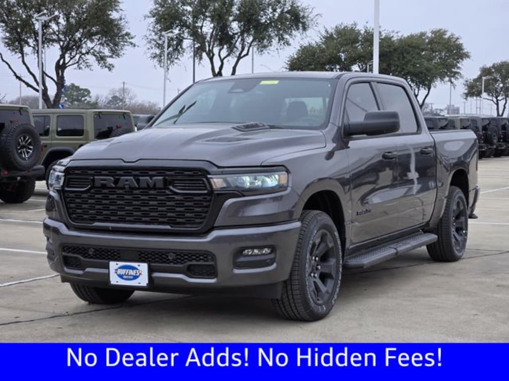 $8,977 off MSRP! Ask about our home delivery service! Touch-free car buying experience is available, call us today for details! Bed Utility Group (400W Inverter, Exterior 115V AC Outlet, MOPAR 4 Adjustable Cargo Tie-Down Hooks, MOPAR Deployable Bed Step, MOPAR Spray in Bedliner, and Pick-Up Box Lighting), Black Express Edition (2nd Row in Floor Storage Bins, 3 Rear Seat Head Restraints, 4 Way Front Headrests, Anti-Spin Differential Rear Axle, Black Chrome Front Lower Fascia Trim, Black Interior Accents, Body Color Front Bumper, Body Color Rear Bumper with Step Pads, Bridgestone Brand Tires, Bucket Seats, Center Console Parts Module, Cloth Bucket Seats, Cluster 7.0" TFT Color Display, For More Info, Call 800-643-2112, Front and Rear Floor Mats, Front LED Fog Lamps, Full Length Floor Console, Grille Black Surround Black Mesh, Manual Adjust 4-Way Driver Seat, Manual Adjust 4-Way Front Passenger Seat, Mopar Black Tubular Side Steps, Rear Folding Seat, Rear Power Sliding Window, SiriusXM Radio Service, SiriusXM Satellite Radio, Sport Performance Hood, and Wheels: 20" x 9.0" Aluminum Painted Clad), Quick Order Package 21D Express (Front Center Seat Cushion Storage, Grille Surround 1 Body Color Texture 1 Black, and Wheels: 20" x 9.0" Aluminum Polished Painted), Tradesman Level 1 Equipment Group (Cloth Bench Seat), 4-Wheel Disc Brakes, 48V Belt Starter Generator, 4G LTE Wi-Fi Hot Spot, 6 Speakers, ABS brakes, Air Conditioning, AM/FM radio, Apple CarPlay, Apple CarPlay/Android Auto, Auto High-beam Headlights, Black Exterior Mirrors, Brake assist, Compass, Connectivity - US/Canada, Delay-off headlights, Driver door bin, Dual front impact airbags, Dual front side impact airbags, Electronic Stability Control, Exterior Mirrors with Heating Element, For Details Visit DriveUconnect.com, Front anti-roll bar, Front Center Armrest, Front reading lights, Front wheel independent suspension, Fully automatic headlights, Global Telematics Box Module, Google Android Auto, GPS Antenna Input, Heated door mirrors, Heavy Duty Vinyl 40/20/40 Split Bench Seat, Illuminated entry, Integrated Center Stack Radio, Integrated Voice Command with Bluetooth, Low tire pressure warning, Manual Folding Exterior Mirrors, Occupant sensing airbag, Outside temperature display, Overhead airbag, Overhead console, Panic alarm, ParkView Rear Back-Up Camera, Passenger door bin, Passenger vanity mirror, Power door mirrors, Power steering, Power windows, Radio data system, Radio: Uconnect 5 W with 8.4" Display, Rear anti-roll bar, Rear step bumper, Remote keyless entry, Speed control, Supplier Part Tracking (J-1), Tachometer, Telescoping steering wheel, Tilt steering wheel, Traction control, USB Host Flip, Variably intermittent wipers, Voltmeter, and Wheels: 18" x 7.5" Steel PainteD.